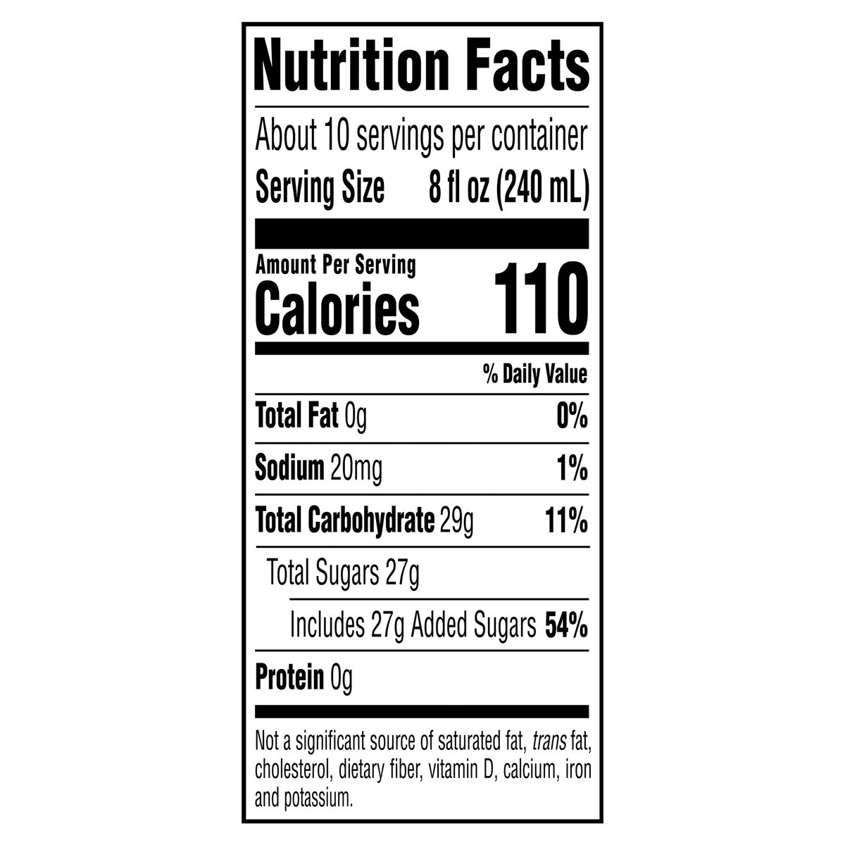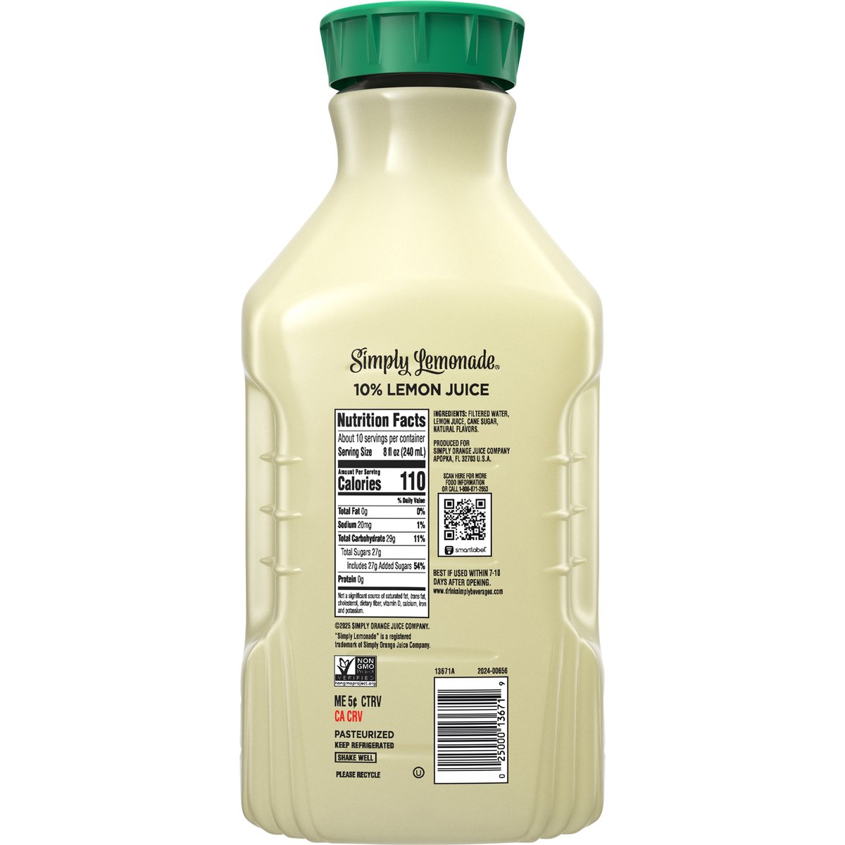 110 calories per 8 fl oz serving. Non-GMO Project verified. nongmoproject.org. All natural. Delicious taste. Not from concentrate. Pasteurized. www.drinksimplybeverages.com. SmartLabel: Scan for more food information or call 1-800-871-2653. Please recycle.
