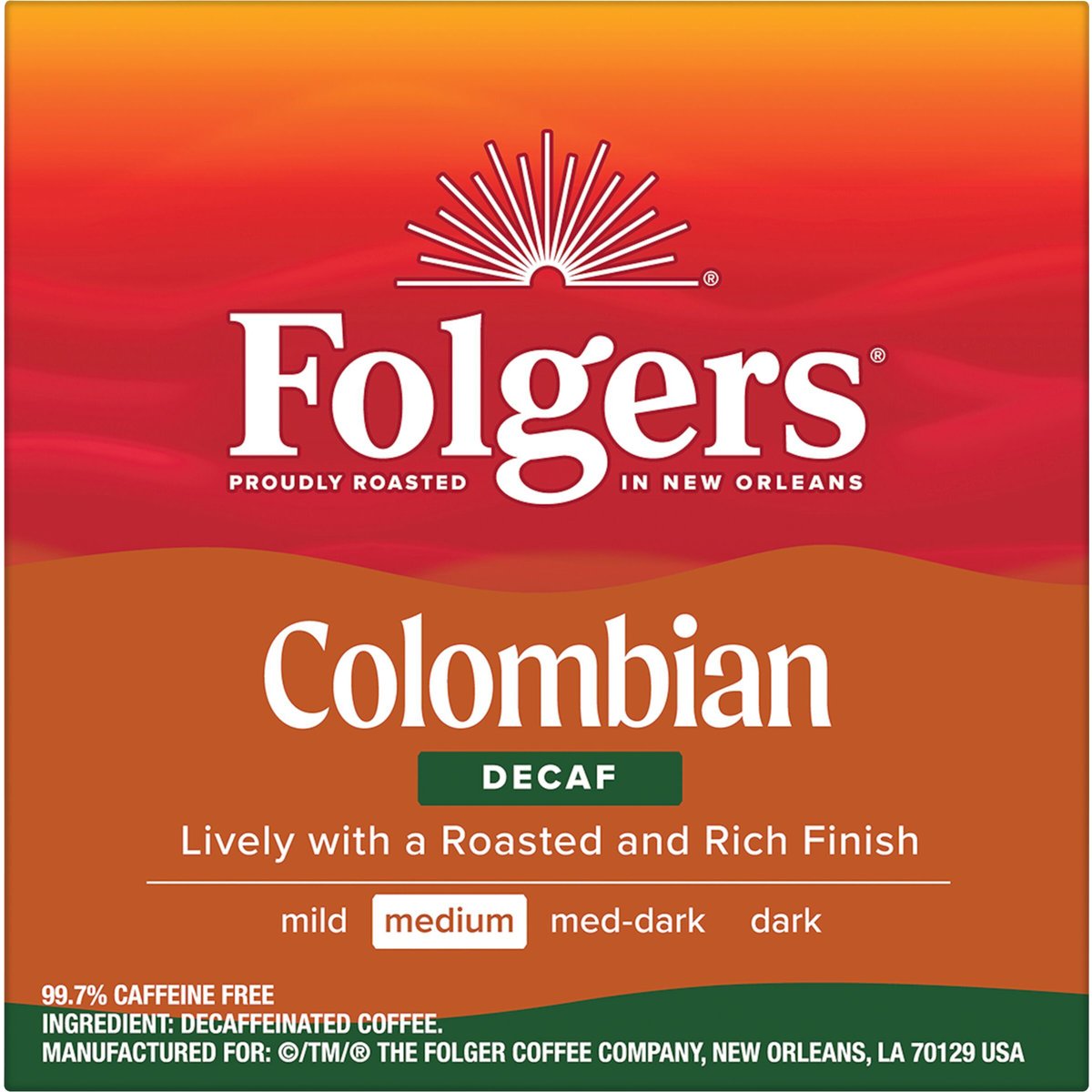 Folgers Coffee, Medium, Colombian, Decaffeinated, K-Cup Pods