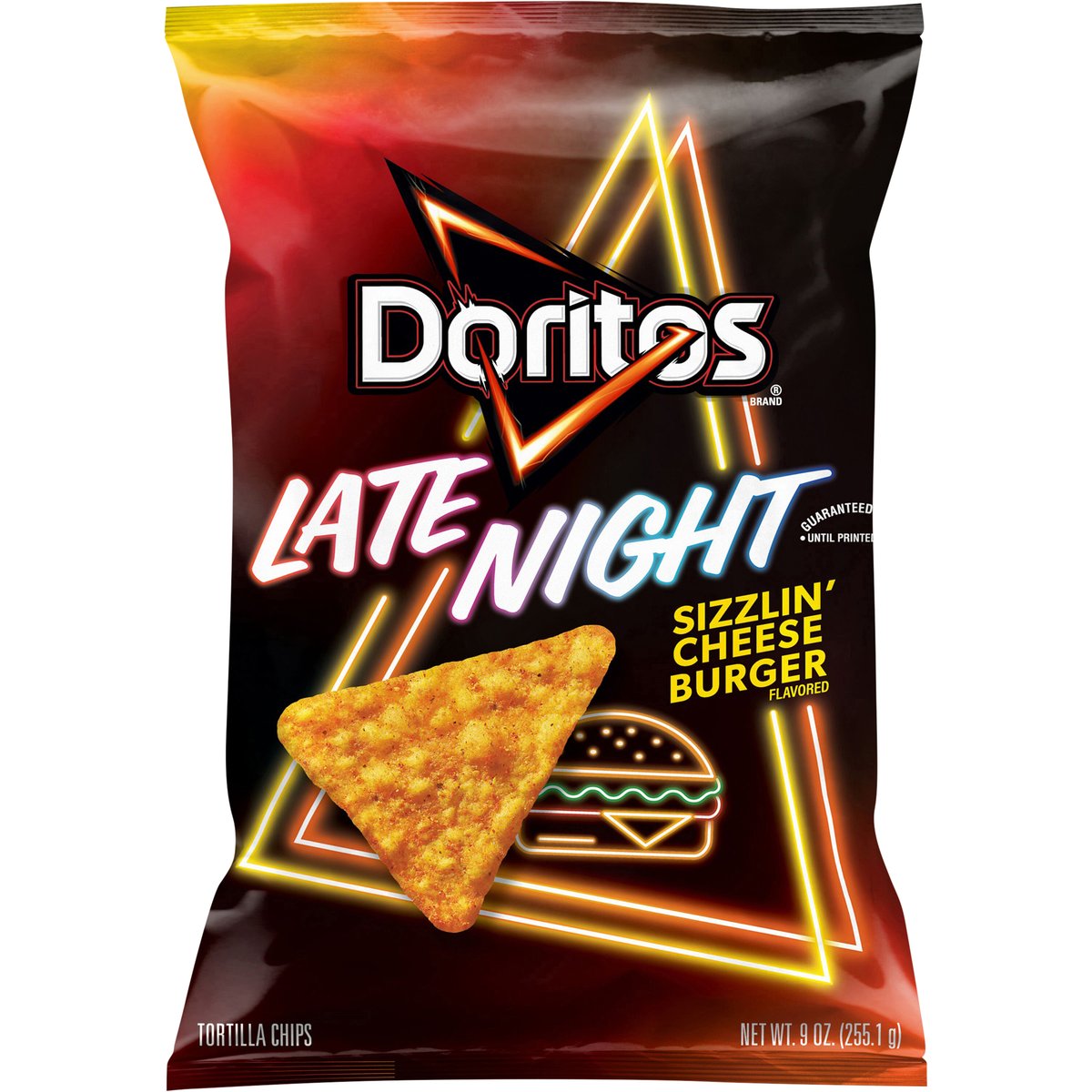 Tortilla Chips, Sizzlin' Cheese Burger Flavored, Late Night