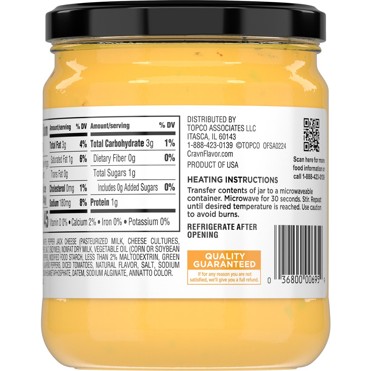 Quality Guaranteed: If for any reason you are not satisfied, we'll give you a full refund. CravnFlavor.com. Scan for more food information or call 1-888-423-0139. 1-888-423-0139. Product of USA.