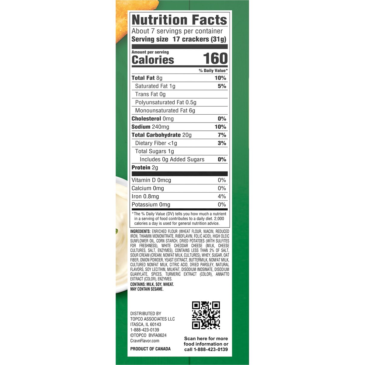 Naturally flavored. Quality Guaranteed: If for any reason you are not satisfied, we'll give you a full refund. CravnFlavor.com. Scan for more food information or call 1-888-423-0139. 1-888-423-0139. Product of Canada.