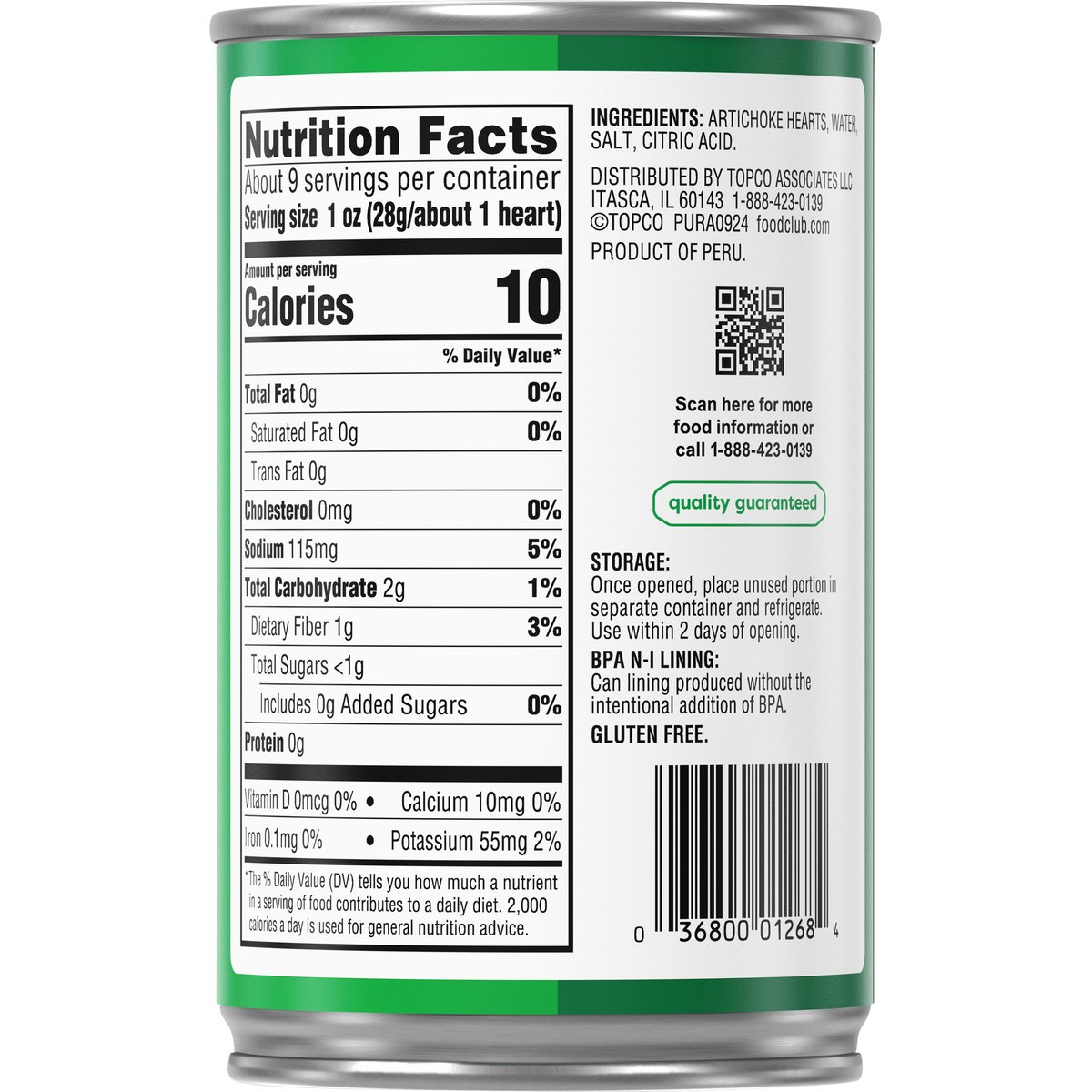 Dr wt 8.4 oz (238 g). Gluten free. Quality guaranteed. foodclub.com. Scan for more food information or call 1-888-423-0139. 1-888-423-0139. BPA N-I Lining: Can lining produced without the intentional addition of BPA. Product of Peru.
