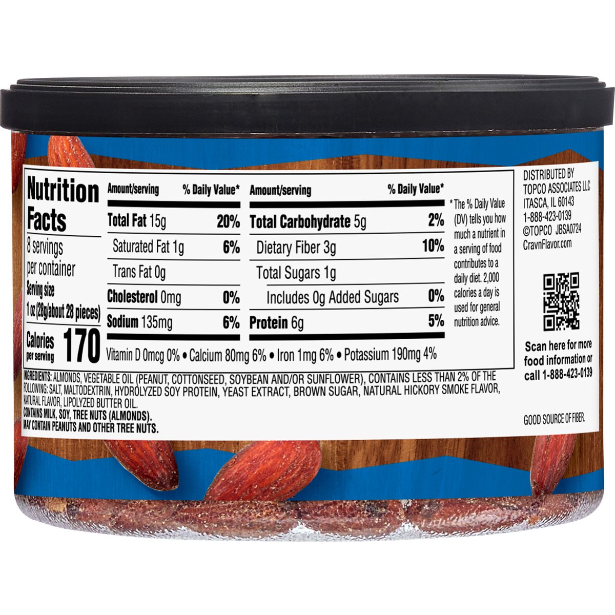Smoke flavored with other natural flavors. No artificial colors or flavors. Contains 6 g of protein per serving. See nutrition information for fat content. Good source of fiber. Quality Guaranteed: If for any reason you are not satisfied, we'll give you a full refund. CravnFlavor.com. Scan for more food information or call 1-888-423-0139. 1-888-423-0139. Reduce. Re-use. Recycle. Renew.