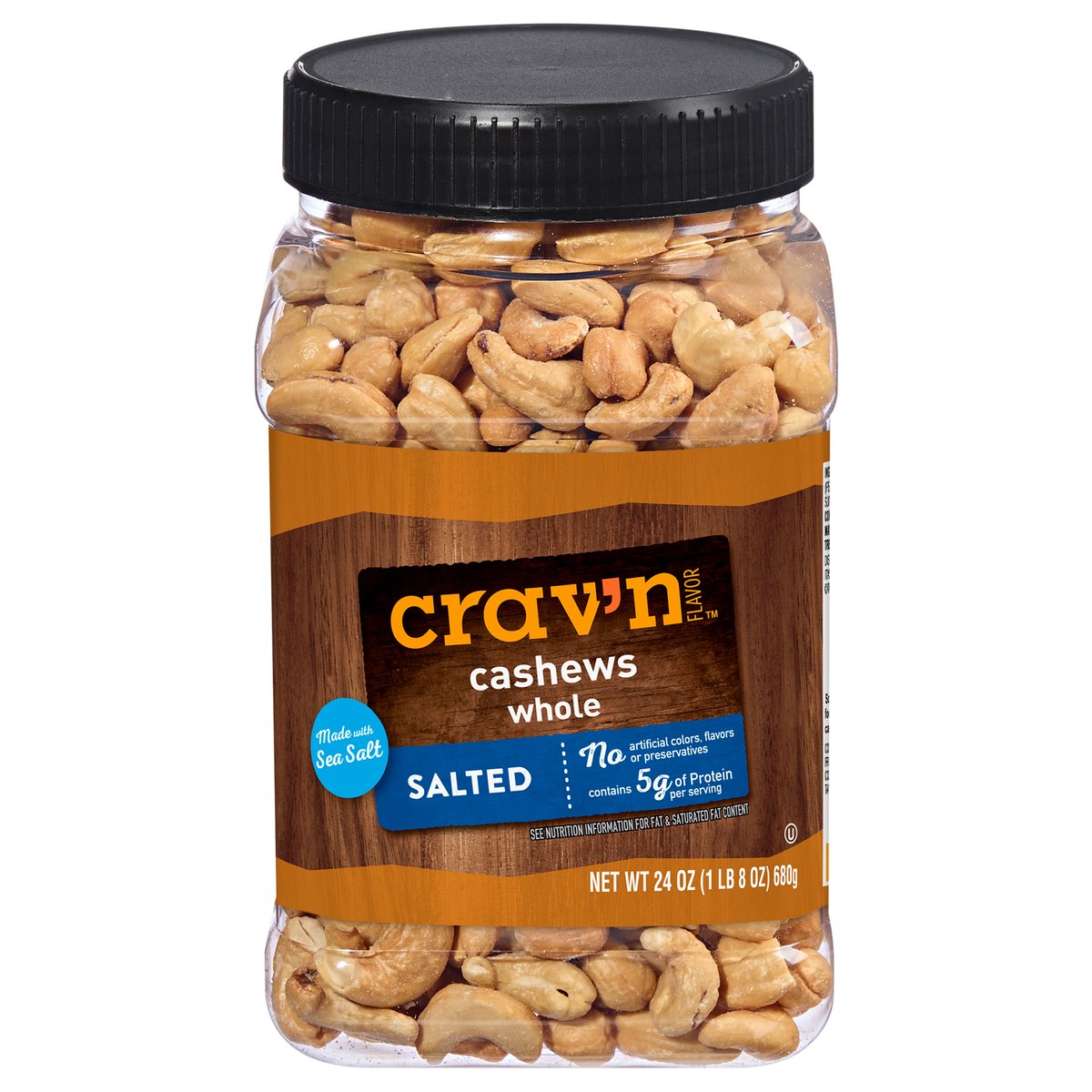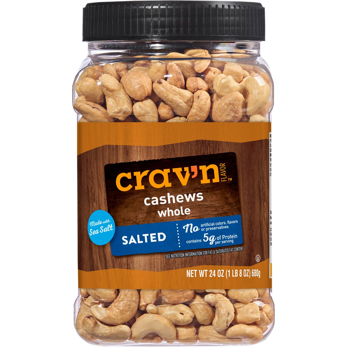 No artificial colors, flavors or preservatives. Contains 5 g of protein per serving. See nutrition information for fat & saturated fat content. Quality guaranteed. CravnFlavor.com. Scan for more food information or call 1-888-423-0139. 1-888-423-0139. Contains Cashews from Vietnam, Ivory Coast, Ghana, Tanzania, Cambodia.