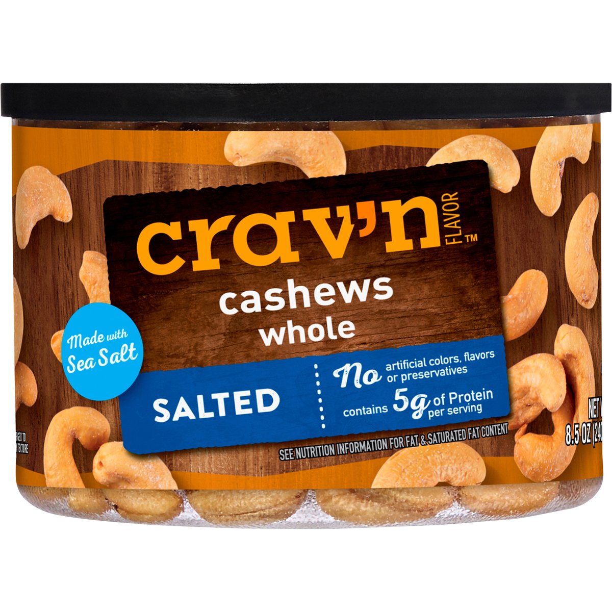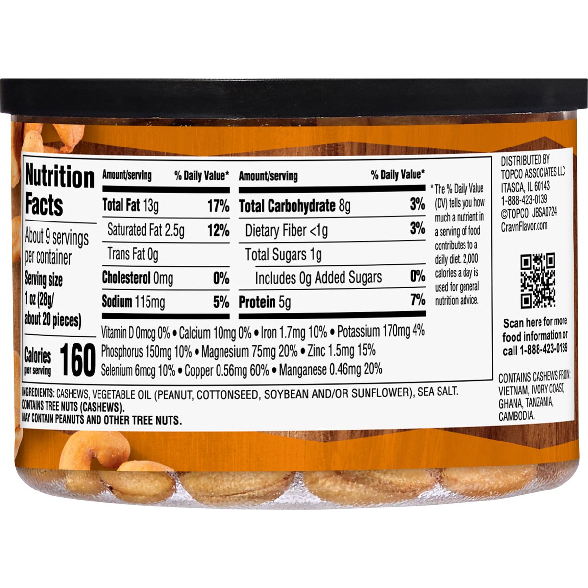 No artificial colors, flavors or preservatives. Contains 5 g of protein per serving. See nutrition information for fat & saturated fat content. Quality Guaranteed: If for any reason you are not satisfied, we'll give you a full refund. CravnFlavor.com. Scan for more food information or call 1-888-423-0139. 1-888-423-0139. Reduce. Re-use. Recycle. Renew. Contains Cashews from: Vietnam, Ivory Coast, Ghana, Tanzania, Cambodia.