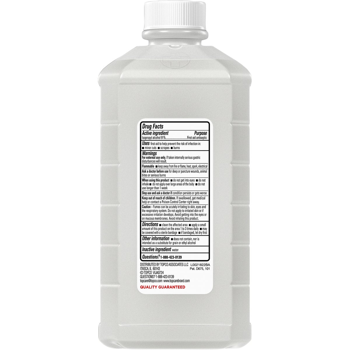 Other Information: Does not contain, nor is intended as a substitute for grain or ethyl alcohol. First aid antiseptic. Helps Prevent the Risk of Infection in: Minor cuts; Minor scrapes; Minor burns. Quality guaranteed. www.topcarebrand.com. Visit for more information: http://topbrnds.com/4904qg. Questions? 1-888-423-0139. topcare@topco.com. www.topcarebrand.com.