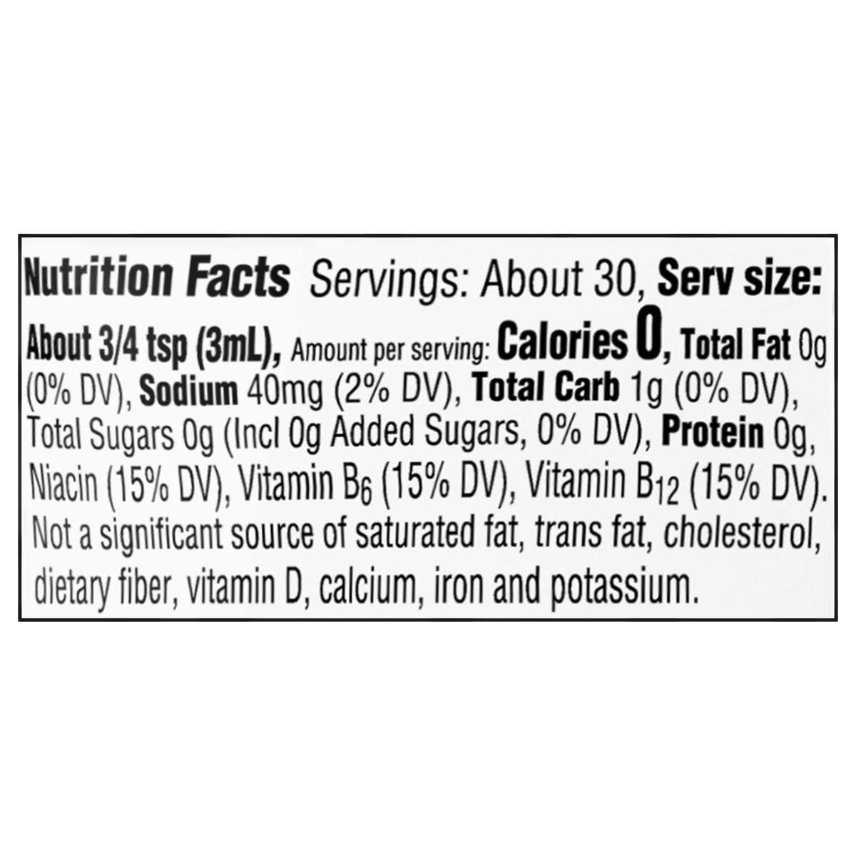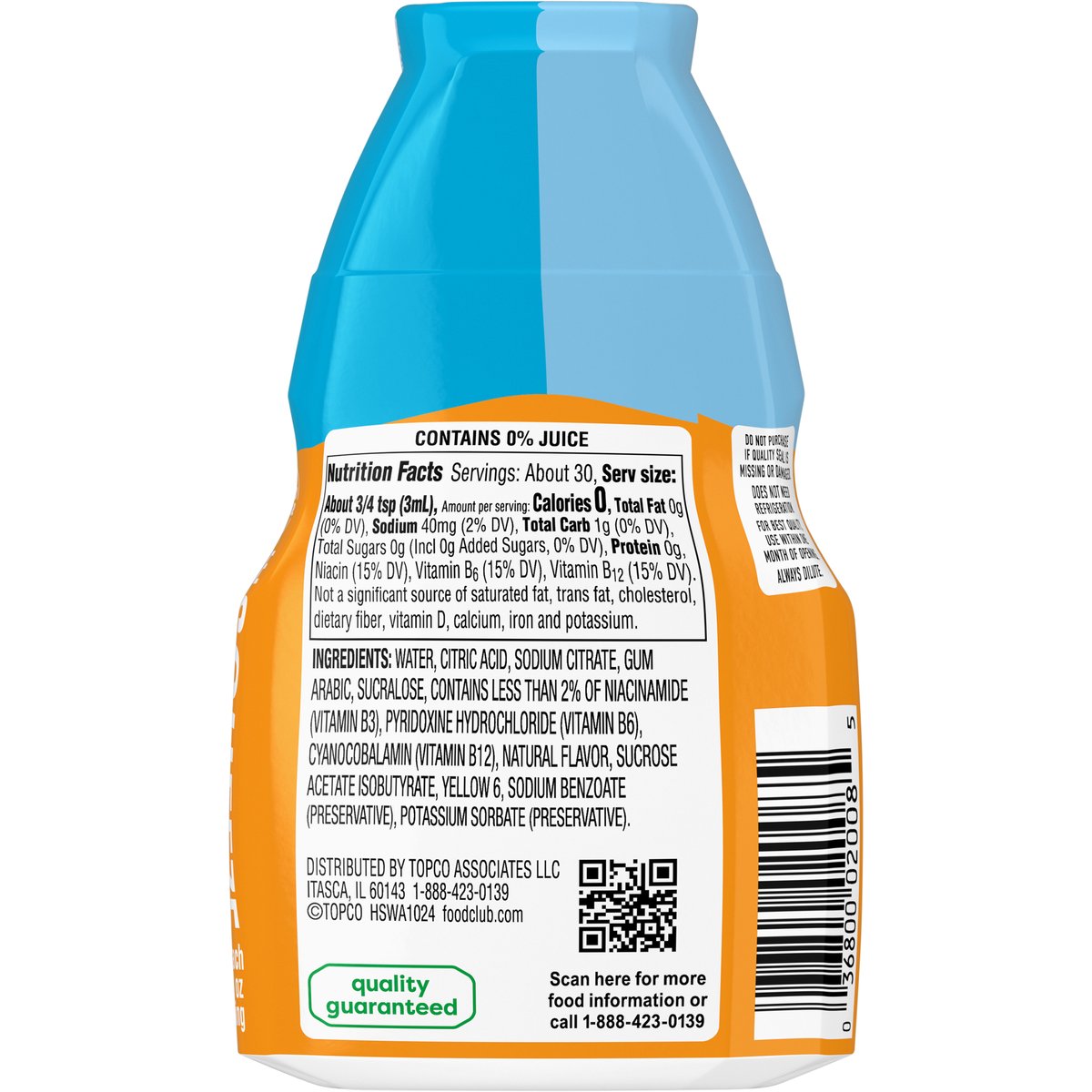 Natural flavor. Liquid beverage enhancer with other natural flavors. 0 calories per 3/4 tsp. Zero sugar. Always dilute. One squeeze for each 12 fl oz serving. Quality guaranteed. foodclub.com. Scan for more food information or call 1-888-423-0139. 1-888-423-0139.