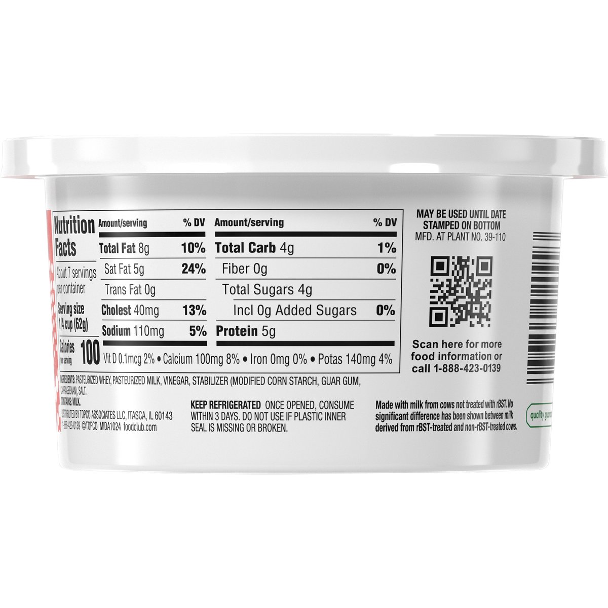 No artificial colors, flavors or preservatives. Made with milk from cows not treated with rBST. No significant difference has been shown between milk derived from rBST-treated and non-rBST-treated cows. Quality guaranteed. foodclub.com. Scan for more food information or call 1-888-423-0139. 1-888-423-0139.