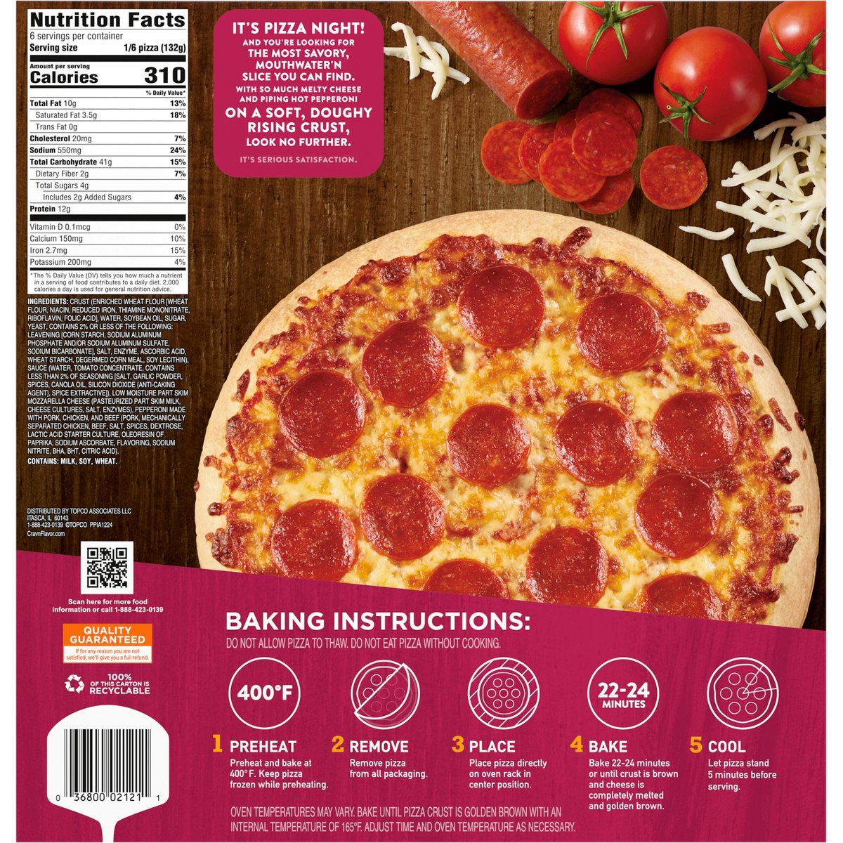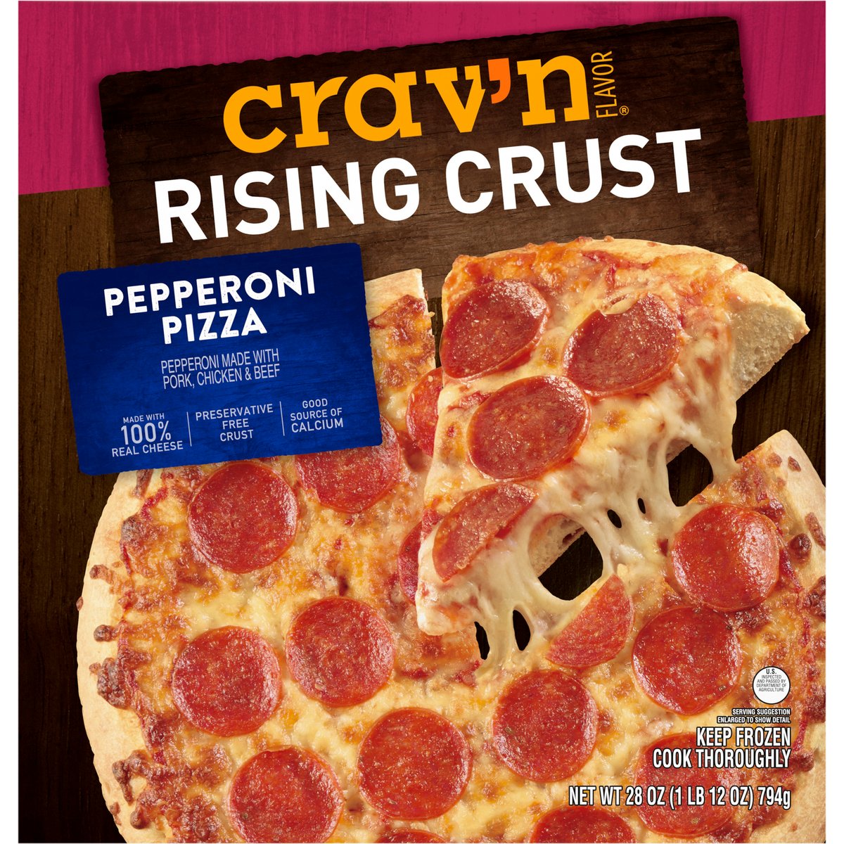 Good source of calcium. Preservative-free crust. It's pizza night! And you're looking for the most savory, mouthwatering slice you can find. With so much melty cheese and piping hot pepperoni on a soft, doughy rising crust, look no further. It's serious satisfaction. Quality Guaranteed: If for any reason you are not satisfied, we'll give you a full refund. U.S. inspected and passed by Department of Agriculture. CravnFlavor.com. Scan for more food information or call 1-888-423-0139. 1-888-423-0139. 100% of this carton is recyclable.