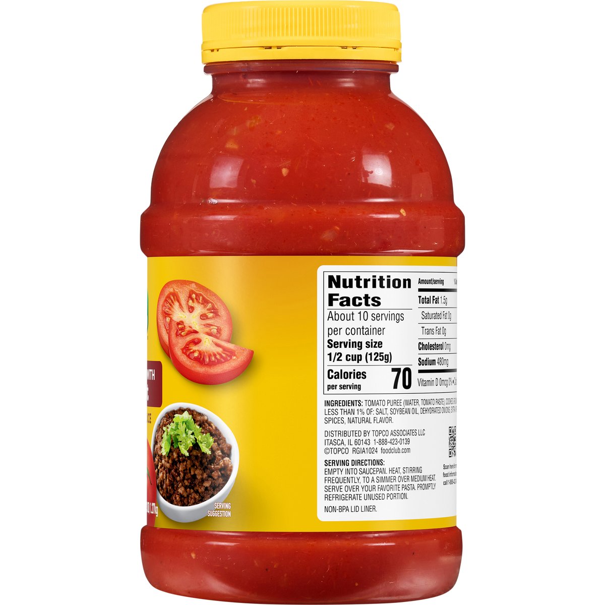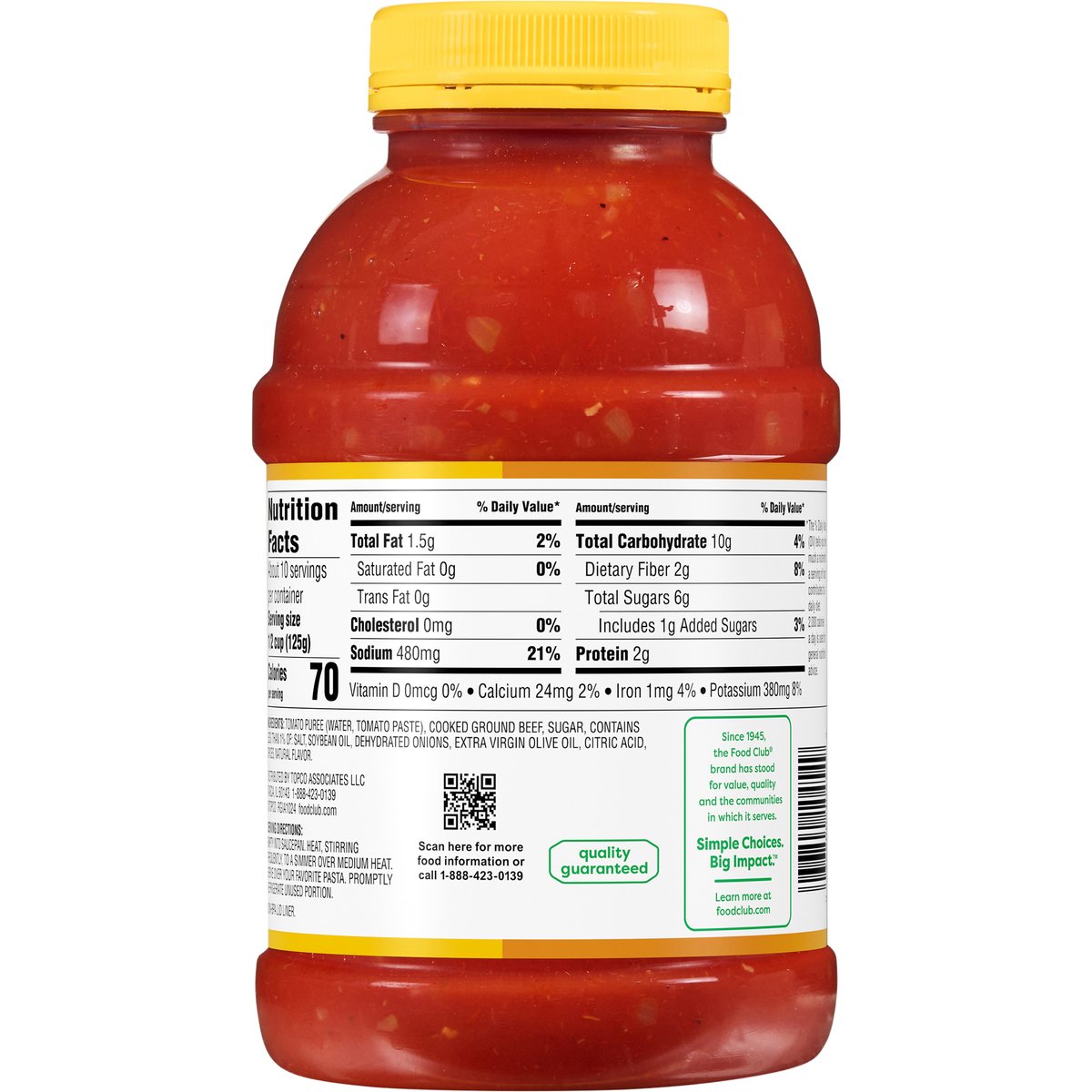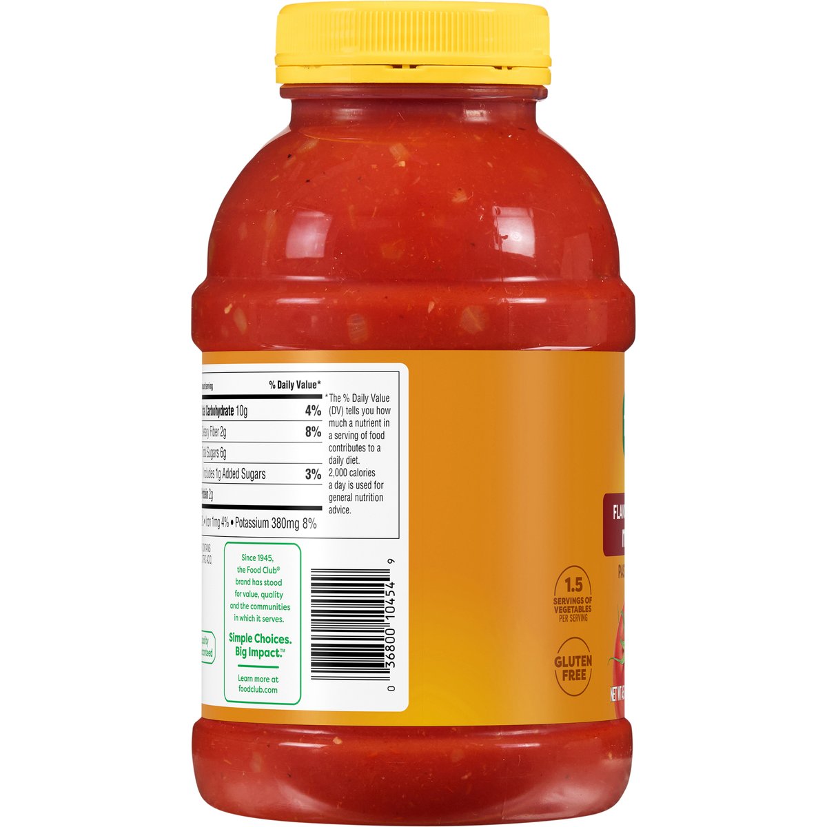 No artificial colors or flavors. Add flavor to life. Since 1945. No high fructose corn syrup. 3/4 cup of vegetables per 1/2 cup of sauce. Quality Guaranteed: 100% satisfaction or double your money back. www.foodclubbrand.com. Scan for more food information or call 1-888-423-0139. Please recycle.