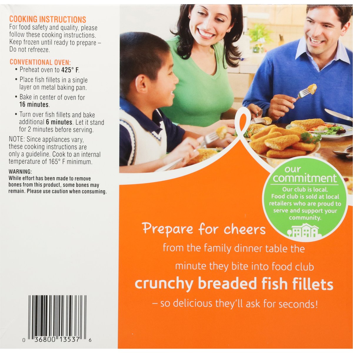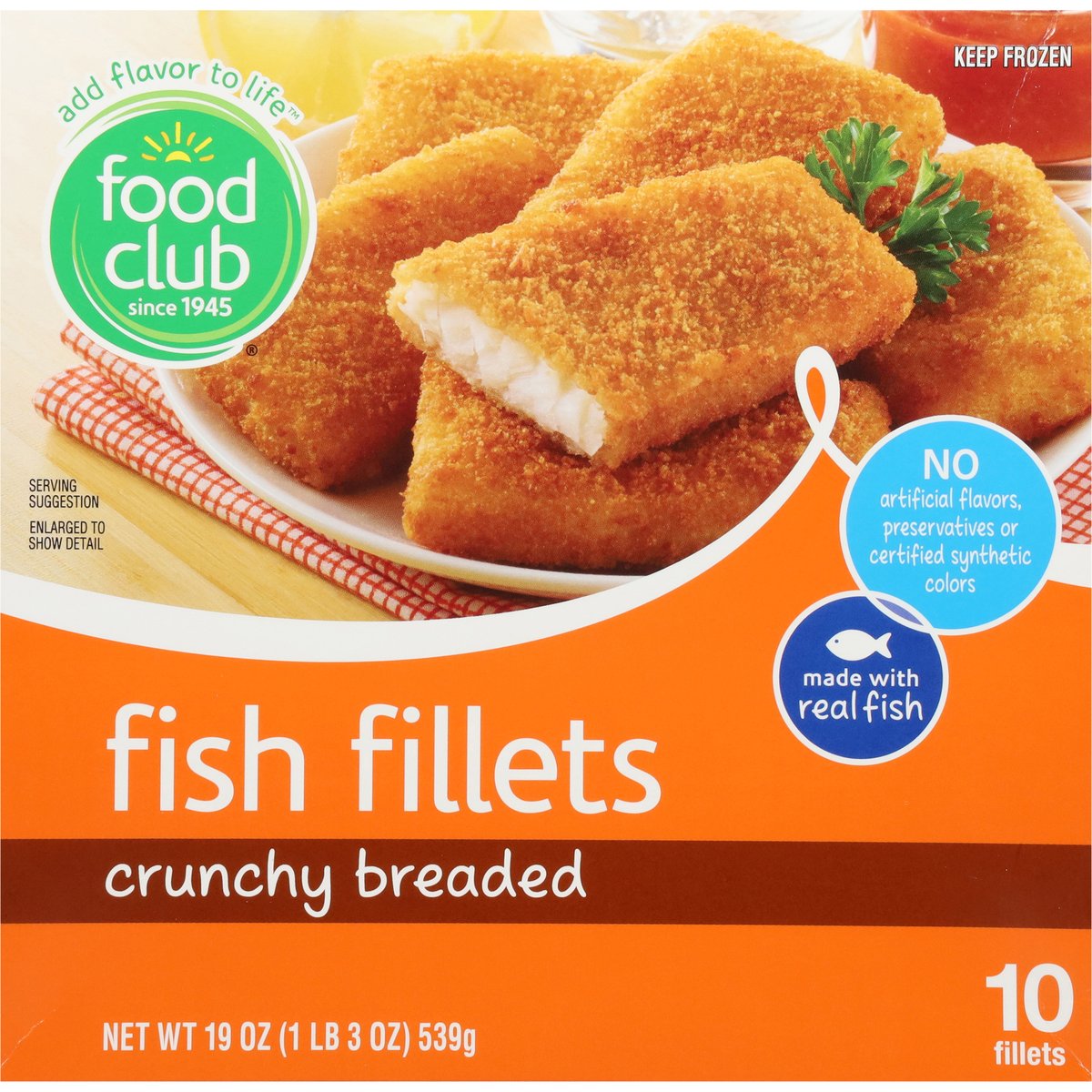 No artificial flavors, preservatives or certified synthetic colors. Add flavor to life. Since 1945. Our Commitment: Our club is local. Food Club is sold at local retailers who are proud to serve and support your community. Prepare for cheers from the family dinner table the minute they bite into Food Club Crunchy Breaded Fish Fillets - so delicious they'll ask for seconds! Quality Guaranteed: 100% satisfaction or double your money back. www.foodclubbrand.com. Scan for more food information or call 1-888-423-0139. 1-888-423-0139.