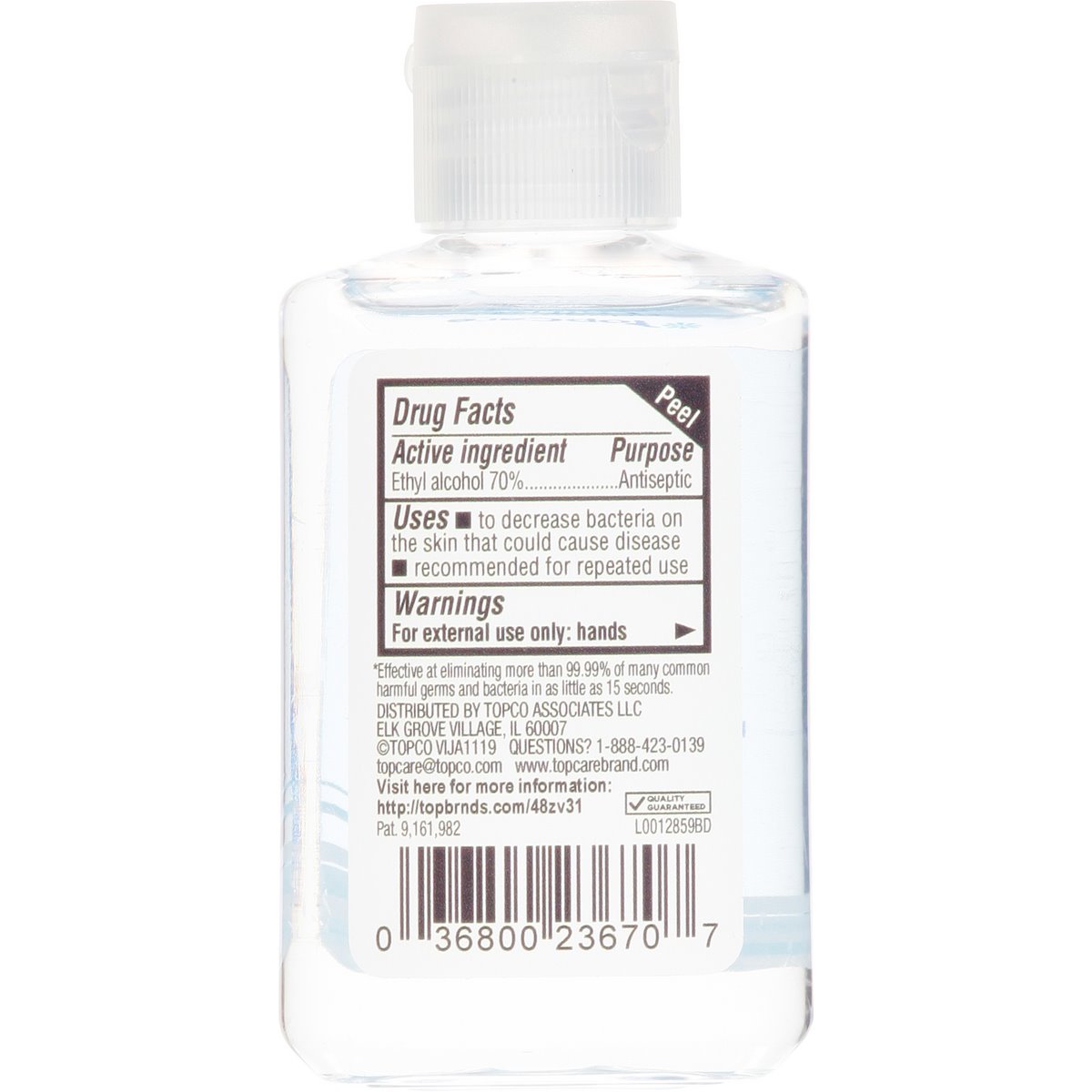 Other Information: Do not store above 105 degrees F. May discolor some fabrics. Harmful to wood finishes and plastics. Misc: Kills more than 99.99% of germs (Effective at eliminating more than 99.99% of many common harmful germs and bacteria in as little as 15 seconds). Compare to Purell (Not manufactured of distributed by GOJO Industries, Inc. distributor of Purell Refreshing Gel Advanced Hand Sanitizer). Quality Guaranteed: This TopCare product is laboratory tested to guarantee its highest quality. Your total satisfaction is guaranteed. topcare at topco.com.