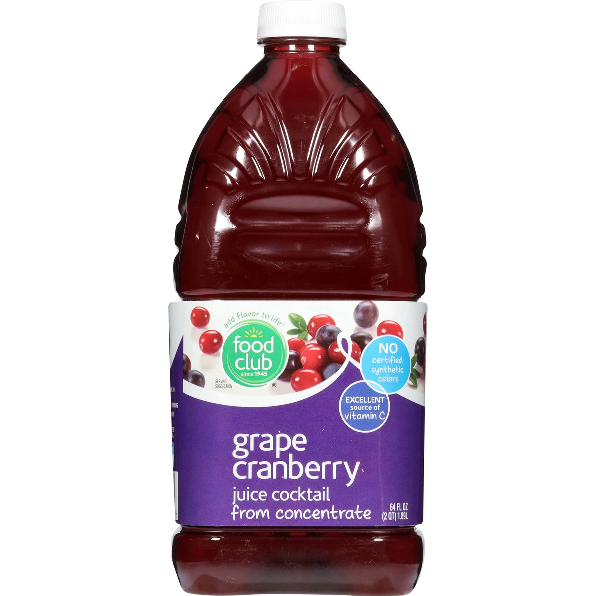 Juice cocktail from concentrate. Excellent source of vitamin C. Add flavor to life. Since 1945. No certified synthetic colors. Pasteurized. Quality Guaranteed: 100% satisfaction or double your money back. www.foodclubbrand.com. Scan for more food information or call 1-888-423-0139. 1-888-423-0139 Non-BPA container. Bottle produced without the intentional addition of BPA. Please recycle.