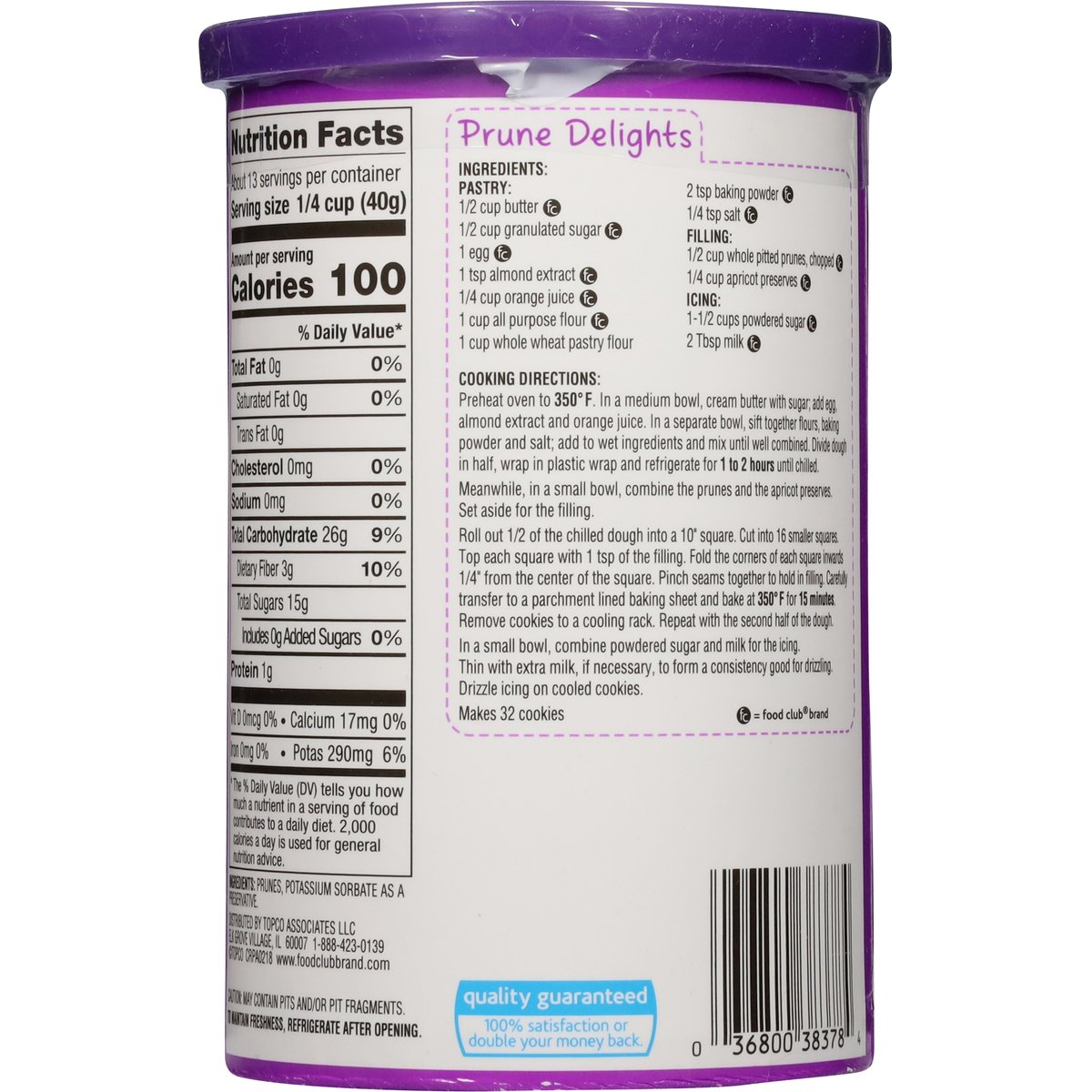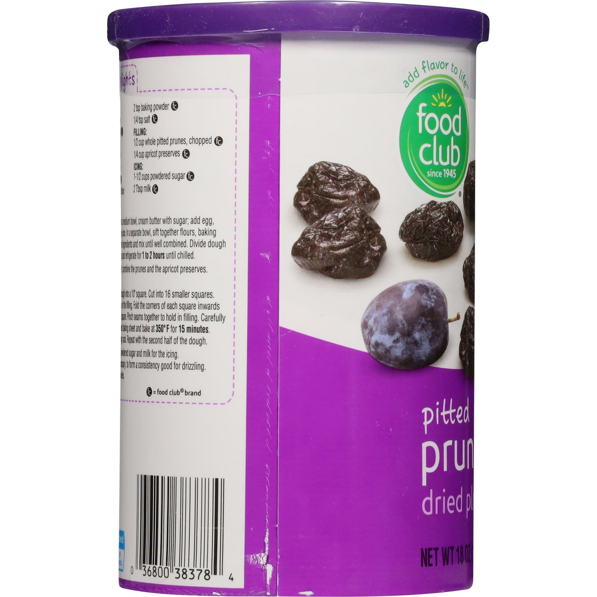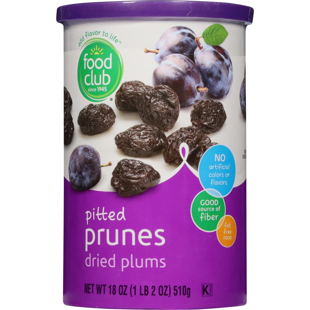 Dried plums. No artificial colors or flavors. Fat free food. Good source of fiber. Add flavor to life. Since 1945. Quality Guaranteed: 100% satisfaction or double your money back. www.foodclubbrand.com. 1-888-423-0139.