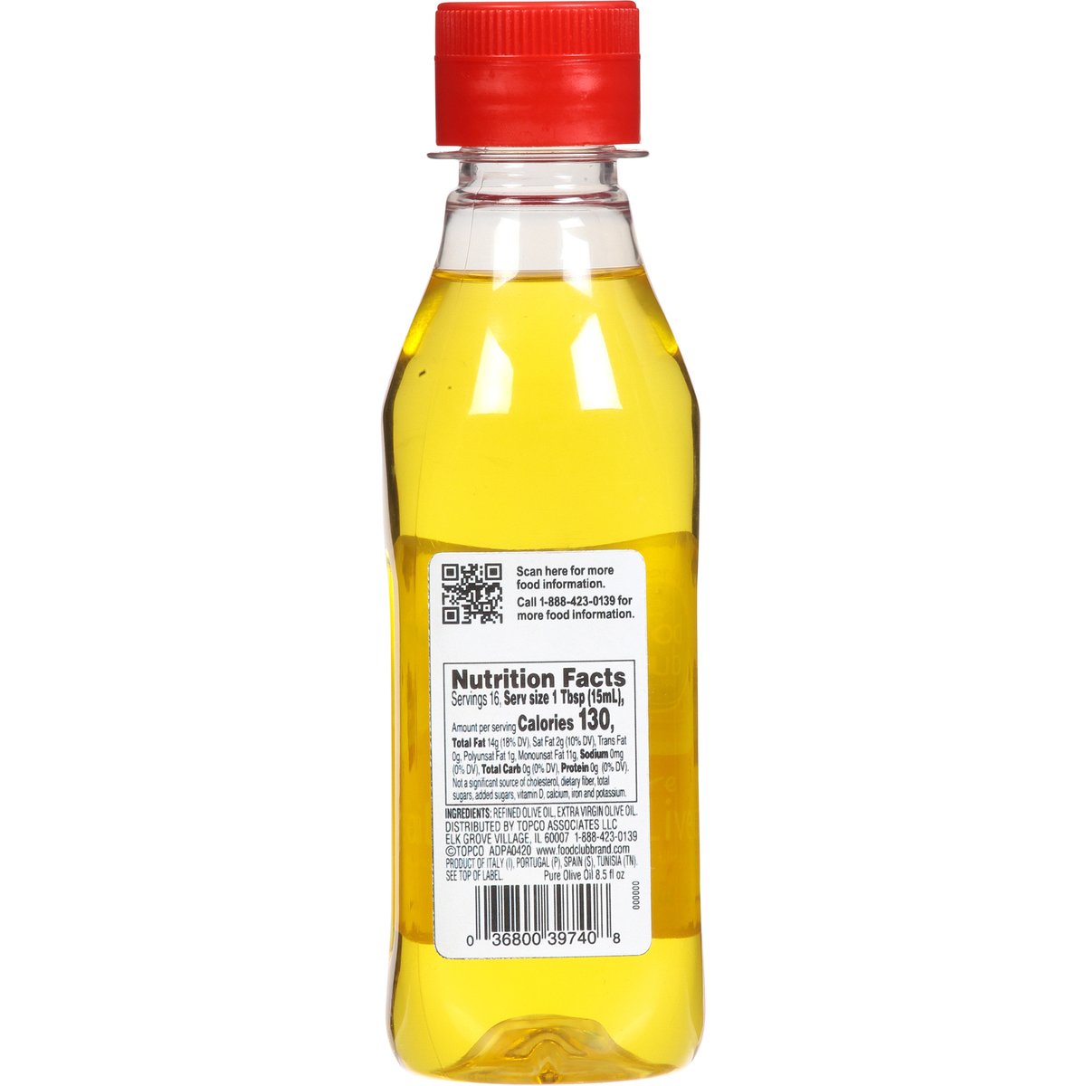 For grilling, sauteing & marinades. Add flavor to life. Since 1945. See top of label. www.foodclubbrand.com. Scan for more food information. Call 1-888-423-0139 for more food information. Product of Italy (I), Portugal (P), Spain (S), Tunisia (TN).