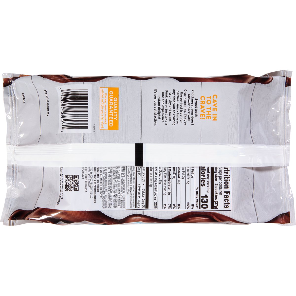 Cave in to the crave! Sweet tooth knocking at your door? Answer back with Crav'n cookies. They're the perfect treat for parties, snack time or any time you're craving crunchy and sweet. Dunk 'em or just take a bite and expeirence instant delight! It's serious satisfaction. Quality Guaranteed: If for any reason you are not satisfied, we'll give you a full refund. www.CravnFlavor.com. Scan for more food information or call 1-888-423-0139.