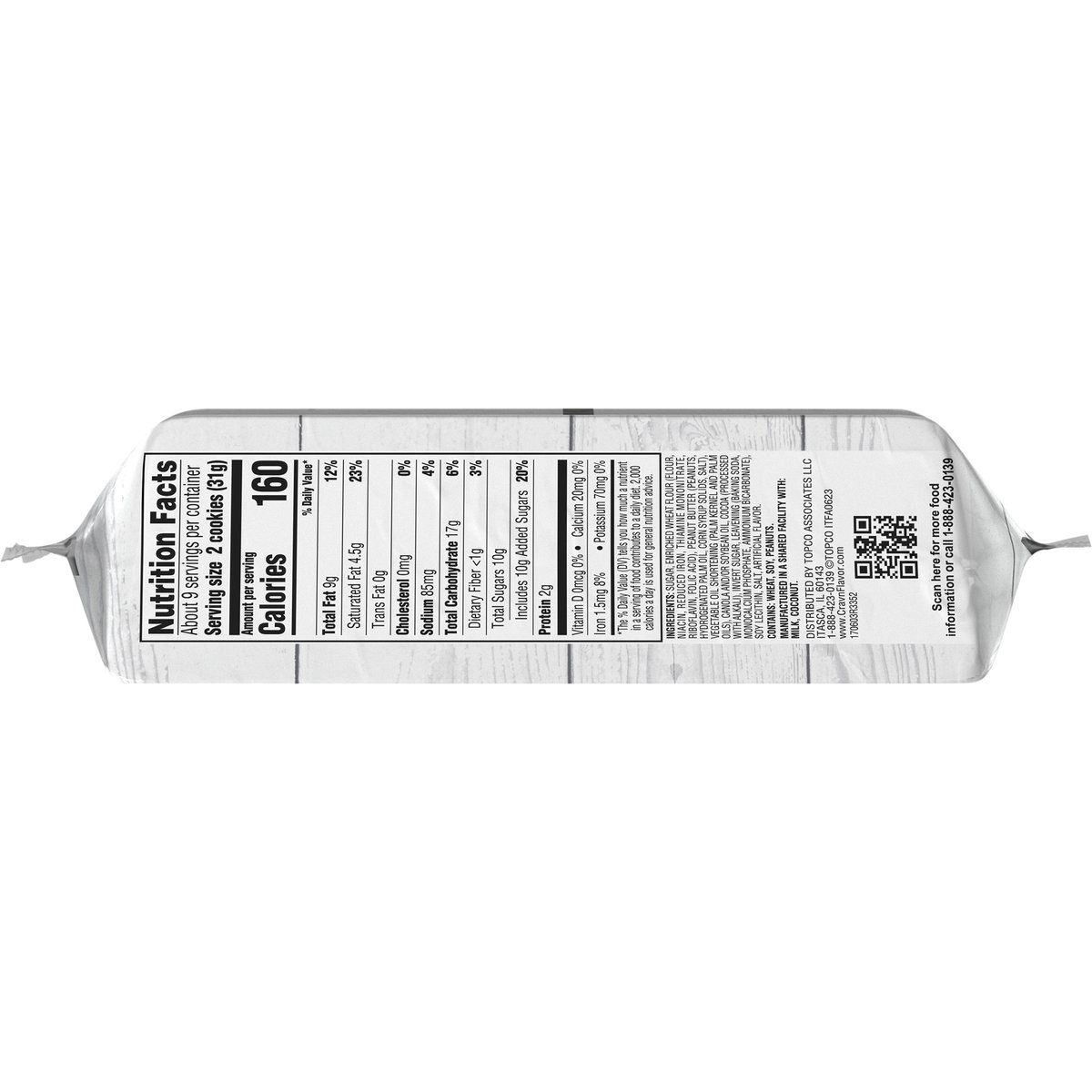 Filled with peanut butter spread. Cave in to the crave! Sweet tooth knocking at your door? Answer back with Crav'n cookies. They're the perfect treat for parties, snack time or any time you're craving crunchy and sweet. Dunk 'em or just take a bite and experience instant delight! It's serious satisfaction. Quality Guaranteed: If for any reason you are not satisfied, we'll give you a full refund. www.CravnFlavor.com. Scan for more food information or call 1-888-423-0139. 1-888-423-0139.