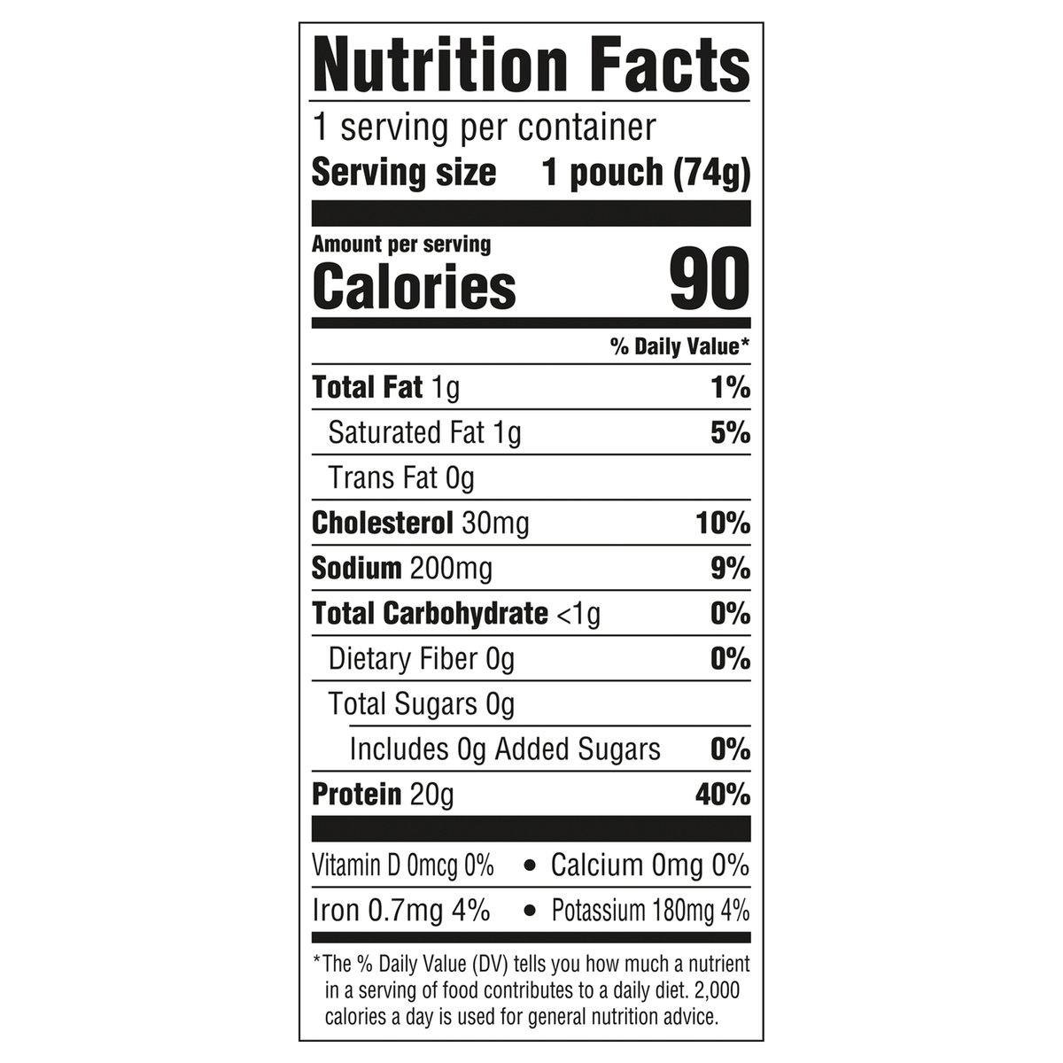 No artificial colors, flavors or preservatives. 20 g protein per serving. 90 calories per serving. Quality guaranteed. foodclub.com. Scan for more food information or call 1-888-423-0139. 1-888-423-0139. Dolphin safe. Wild caught. Product of Thailand.