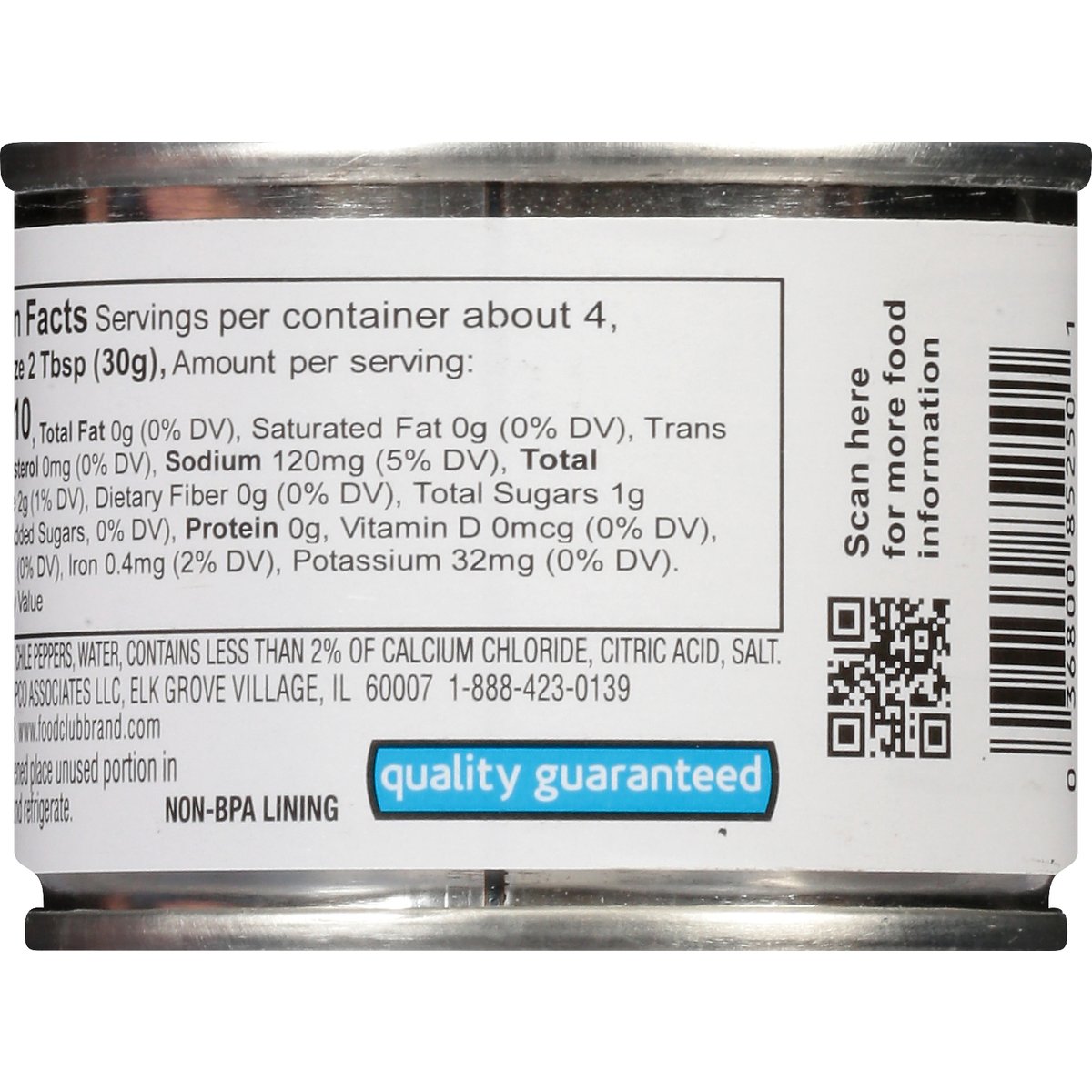 No artificial colors or flavors. Quality guaranteed. www.foodclubbrand.com. Scan for more information. Non-BPA lining.