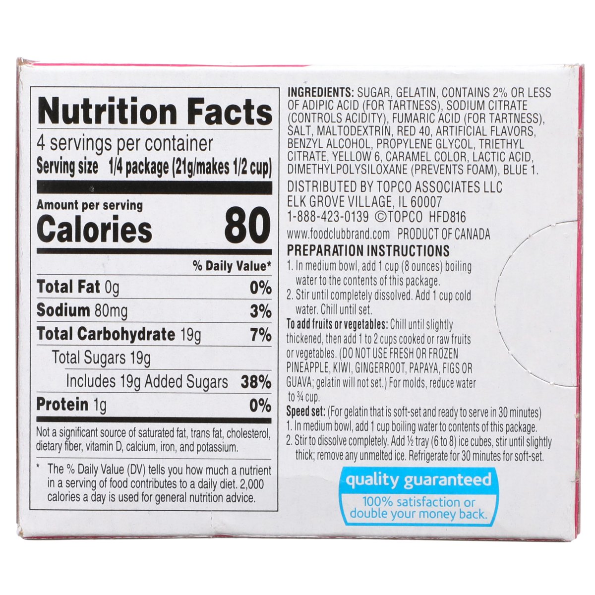 Food Club Raspberry Gelatin Dessert