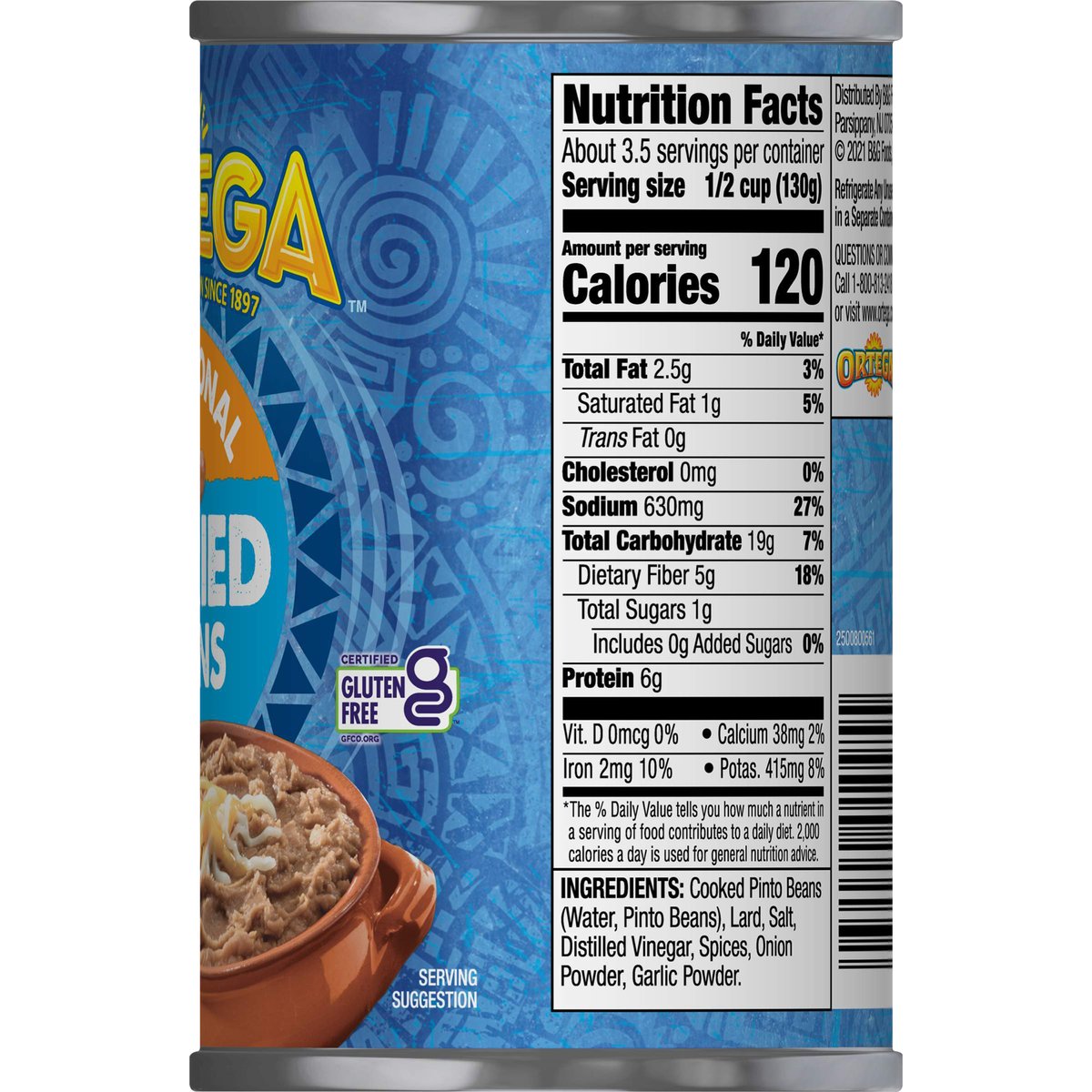 Certified gluten free. gfco.org. Good source of fiber. See nutrition for sodium content. A family tradition since 1897. www.ortega.com. For more Ortega Family recipes visit us at www.ortega.com. Questions or comments? Call 1-800-813-2418 or visit www.ortega.com. Recycle.