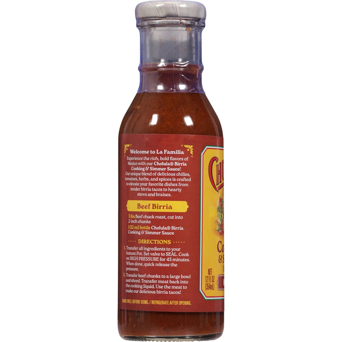 Welcome to La Familia. Experience the rich, bold flavors of Mexico with our Cholula Birria Cooking & Simmer Sauce! Our unique blend of delicious chilies, tomatoes, herbs, and spices is crafted to elevate your favorite dishes from tender birria tacos to hearty stews and braises. cholula.com. Visit us at cholula.com or call 1-855-Cholula.