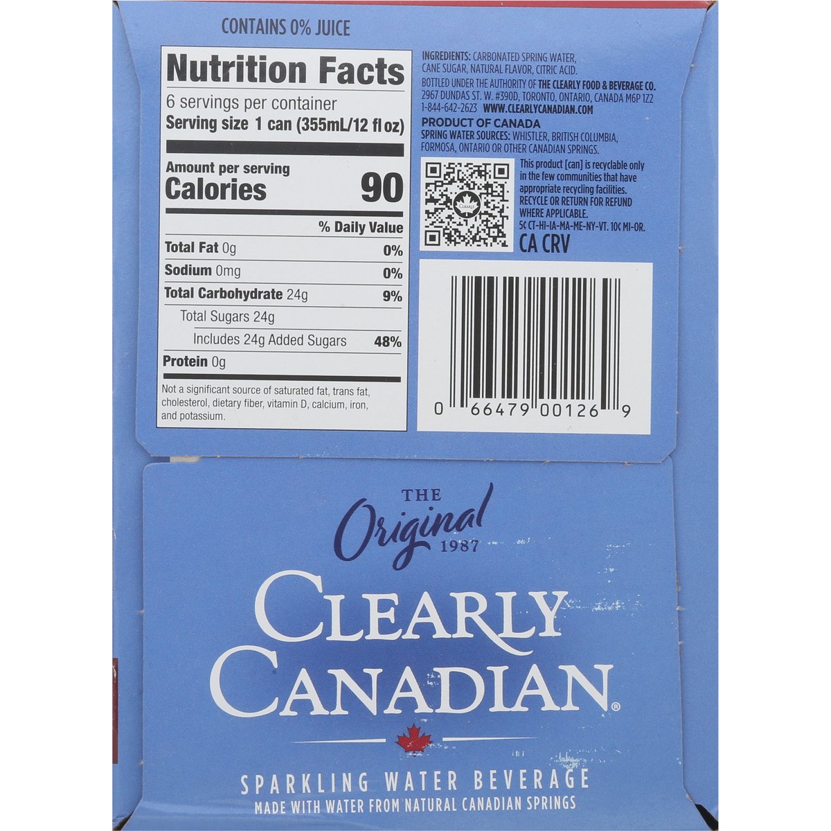 Flavored with other natural flavors. The original 1987. how2recycle.info. www.clearlycanadian.com. This product [can] is recyclable only in the few communities that have appropriate recycling facilities. Recycle or return for refund where applicable. Bottled in Canada. Product of Canada. Spring Water Sources: Whistler, British Columbia, Formosa, Ontario or other Canadian Springs.
