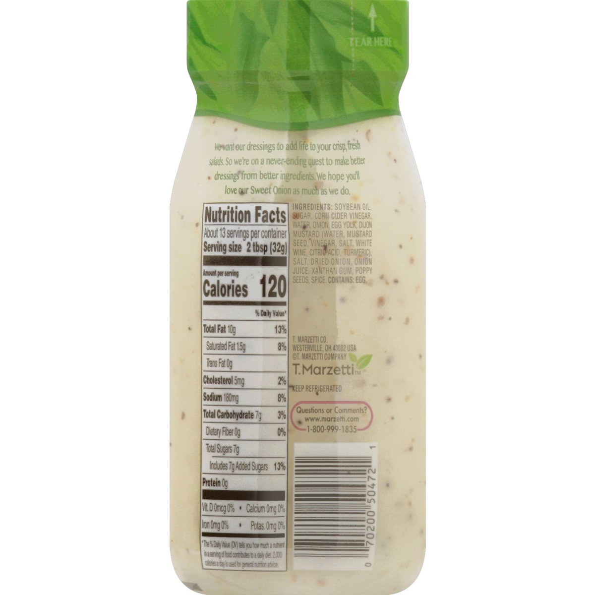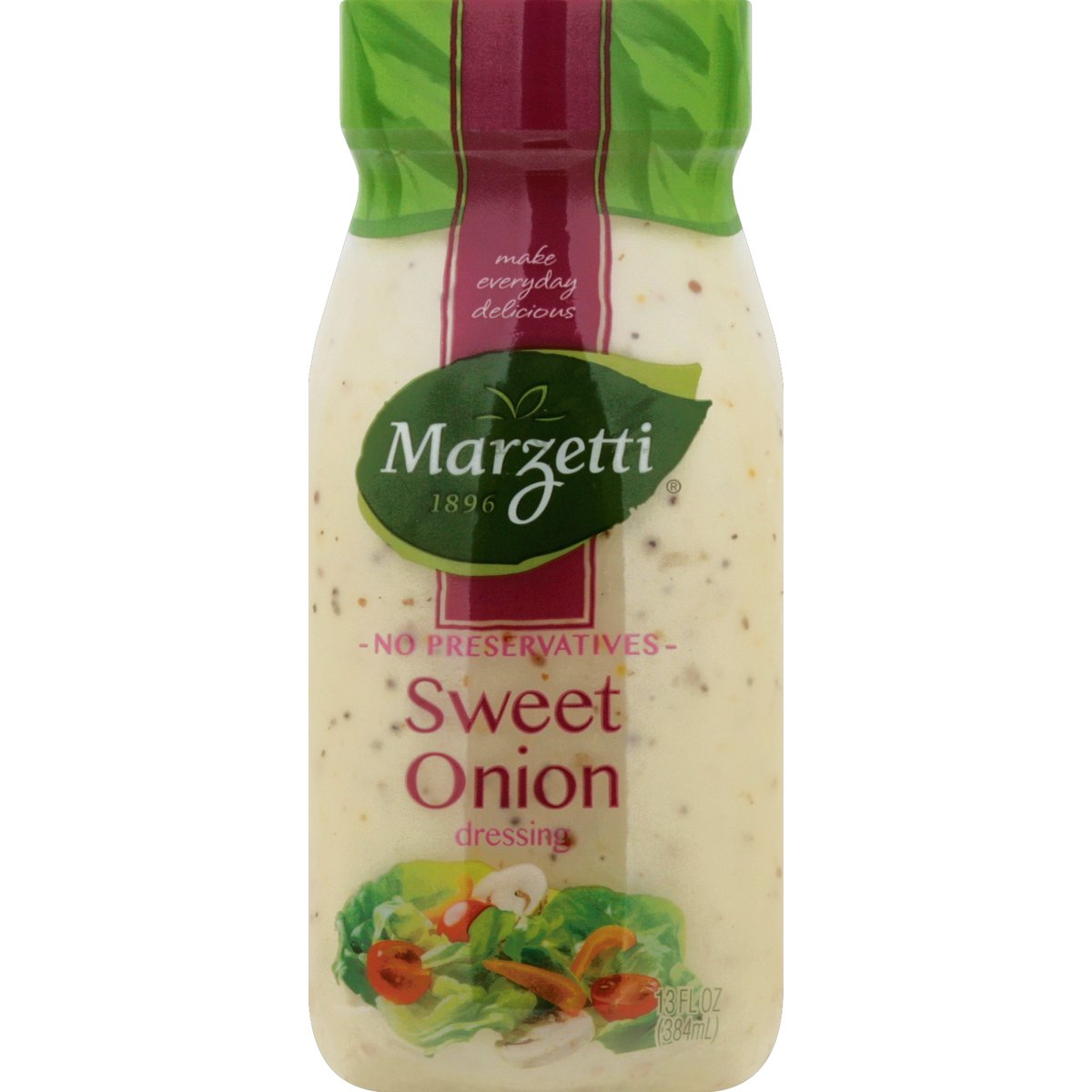 No preservatives. 1896. Make everyday delicious. We want our dressings to add life to your crisp, fresh salads. So we're on a never-ending quest to make better dressings from better ingredients. We hope you'll love our Sweet Onion as much as we do. Questions or comments? www.marzetti.com. 1-800-999-1835.