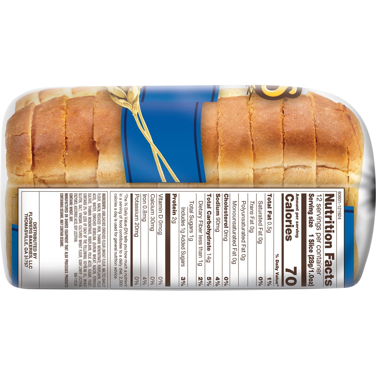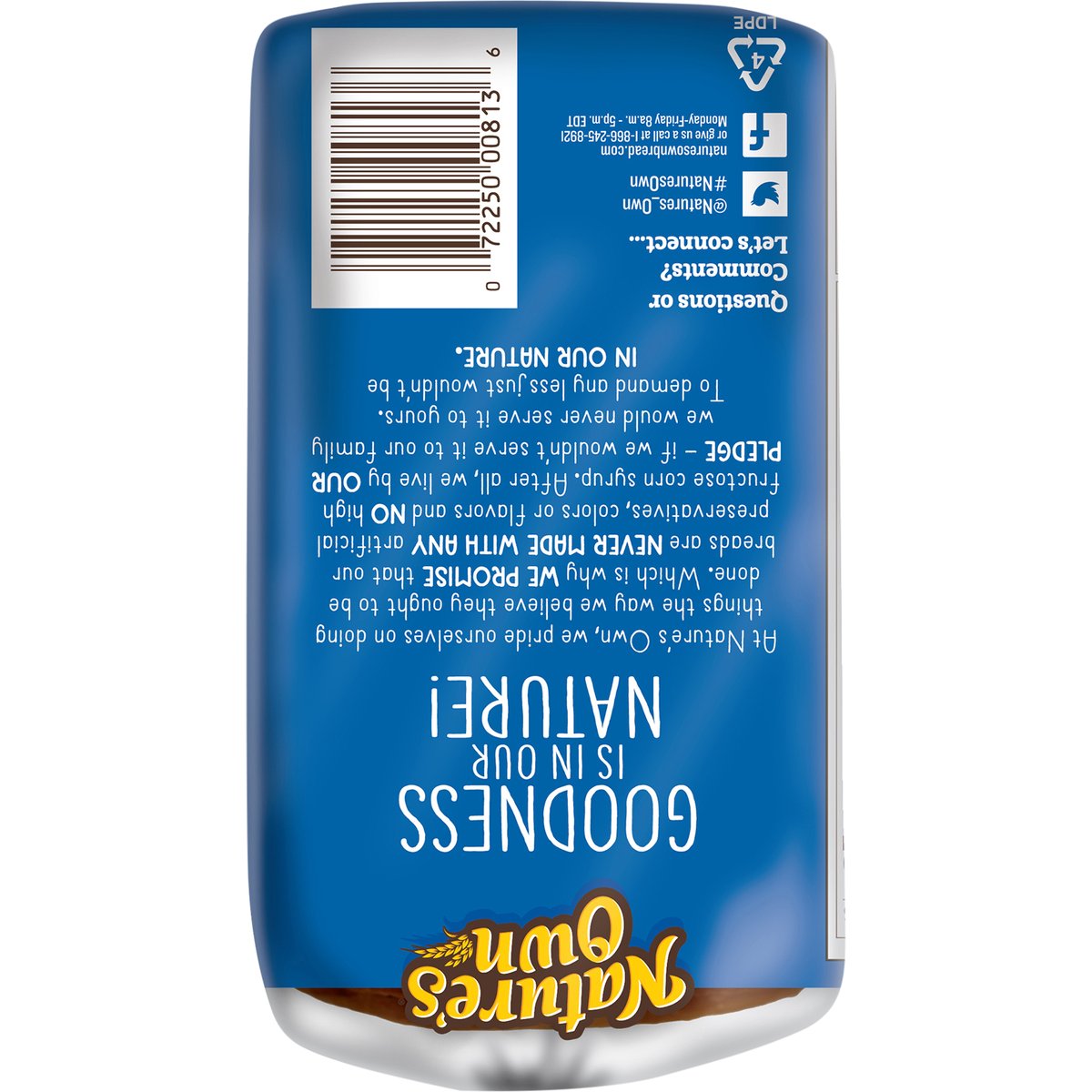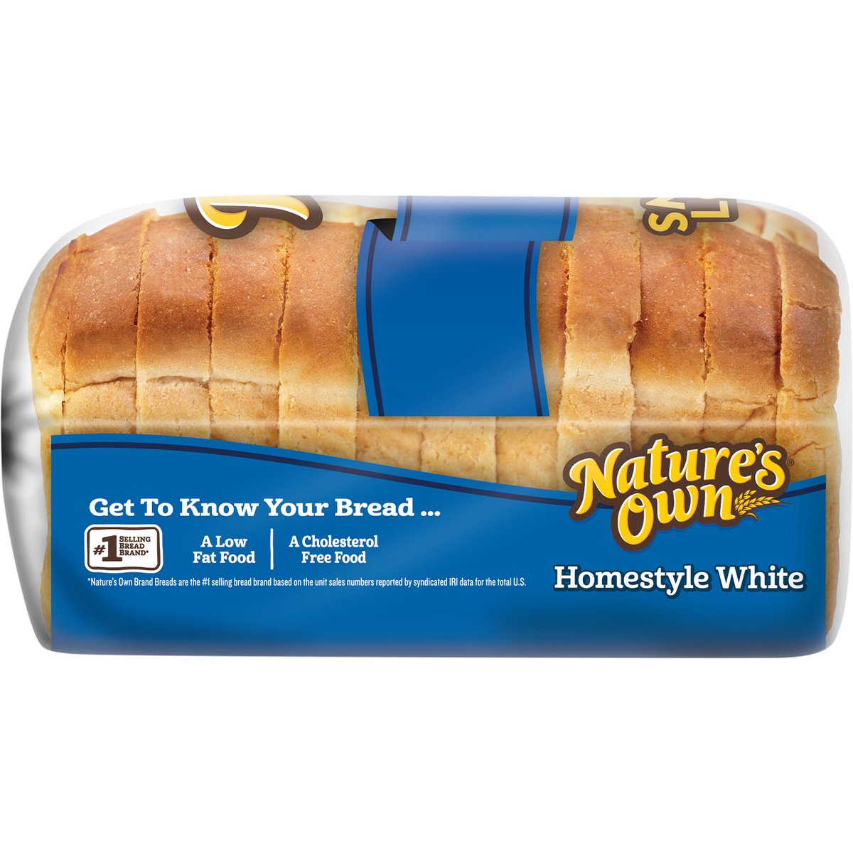 Our Promise: Never artificil preservatives, colors, or flavors and no high fructose corn syrup. Per 1 Slice: 70 calories; 0 g sat fat (0% DV); 90 mg sodium (4% DV); 1 g added sugars (3% DV). A low fat food. A cholesterol free food. Goodness is in our nature! At Nature's Own, we pride ourselves on doing things the way we believe they ought to be done. Which is why we promise that our breads are never made with any artificial preservatives, colors or flavors and no high fructose corn syrup. After all, we live by our pledge - if we wouldn't serve it to our family we would never serve it to yours. To demand any less just wouldn't be in our nature. Get to know your bread... #1 selling bread brand*. * Nature's Own Brand Bread are the #1 selling bread brand based on the unit sales numbers reported by syndicated IRI data for for the total U.S. naturesownbread.com. Twitter. Facebook. @Natures_Own. #NaturesOwn. Questions or Comments? Let's connect... naturesownbread.com or give us a call at 1-866-245-8921 Monday-Friday 8a.m.-5p.m. EDT.
