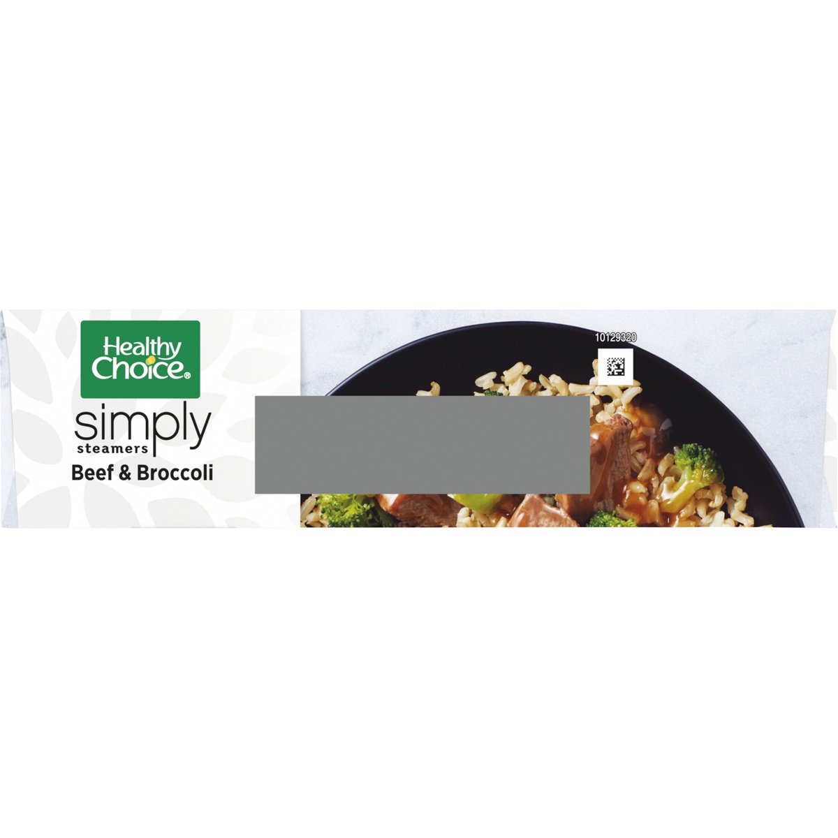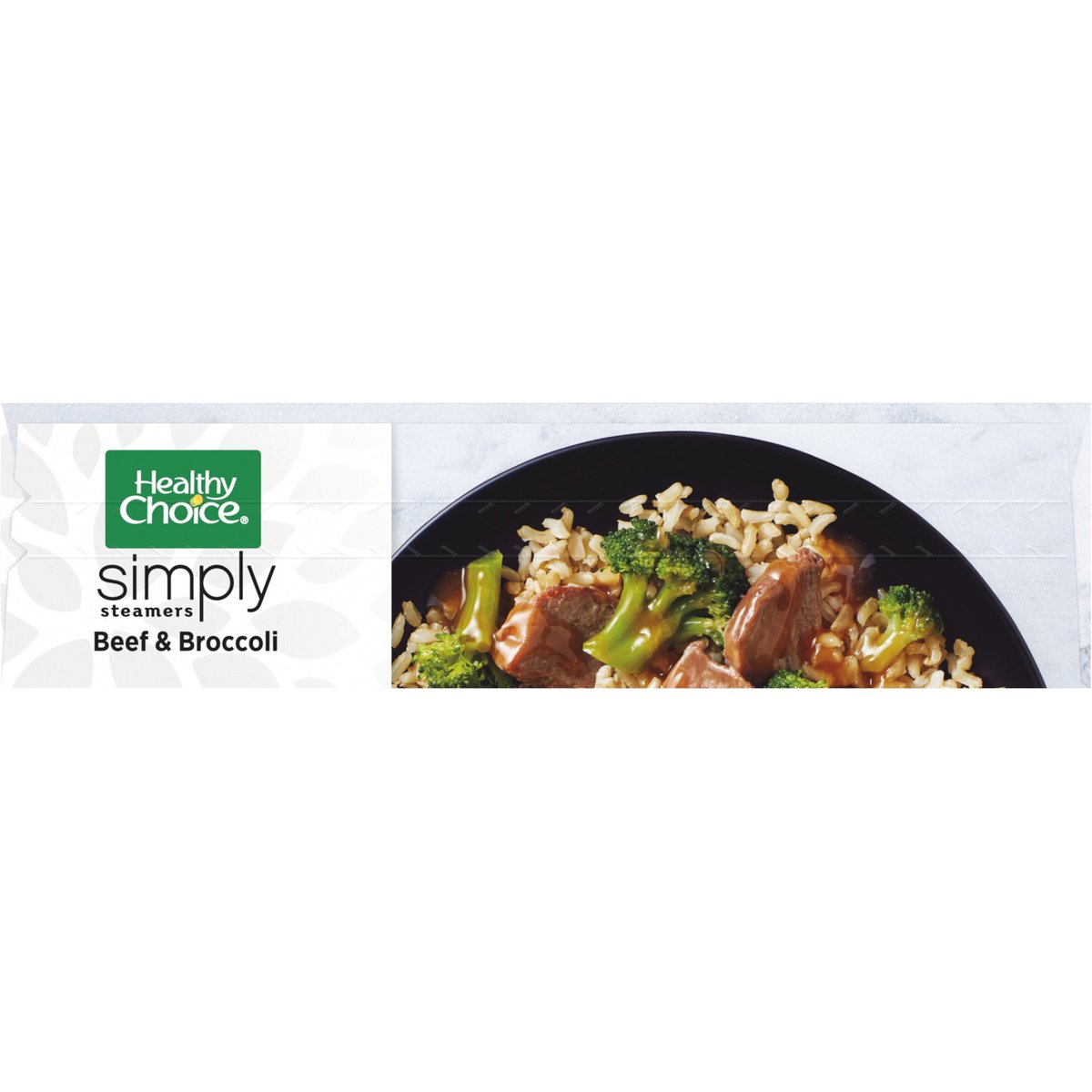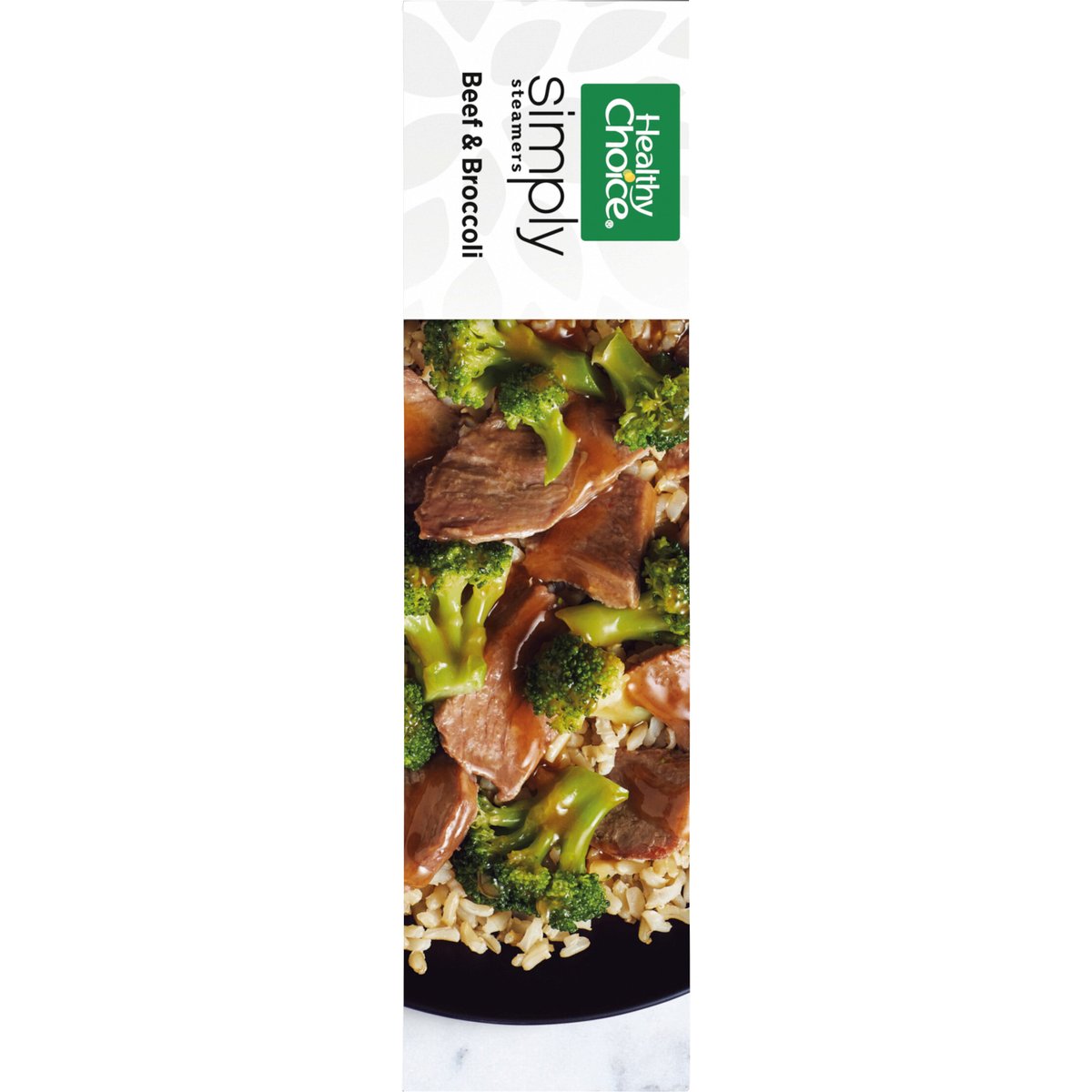 Tender beef strips and broccoli with brown rice in a sesame soy sauce. 3 g of fiber. 16 g protein. 270 calories. Per 1 Meal: 270 calories; 1.5 g sat. fat (8% DV); 520 mg sodium (23% DV); 6 g added sugars (12% DV). High protein. Nothing artificial. Made with tender beef & broccoli. Our beef & broccoli is made with real ingredients that are minimally processed and have no artificial...well, anything! U.S. inspected and passed by Department of Agriculture. how2recycle.info. www.healthychoice.com. SmartLabel: Scan for more food information or call 1-800-323-9980. Questions or comments, visit us at www.healthychoice.com or call 1-800-323-9980.