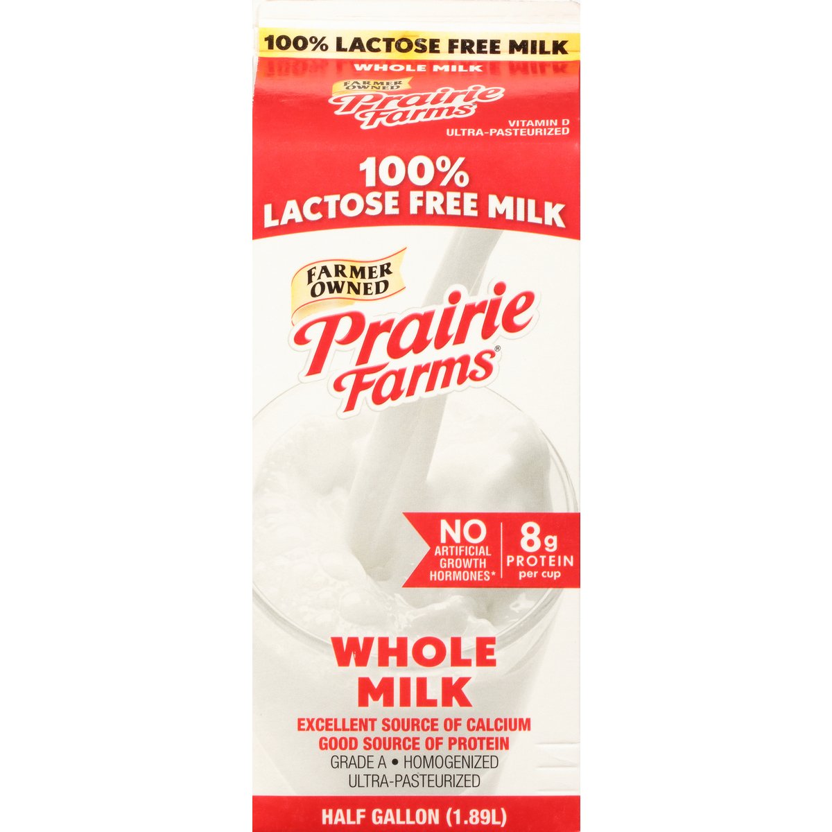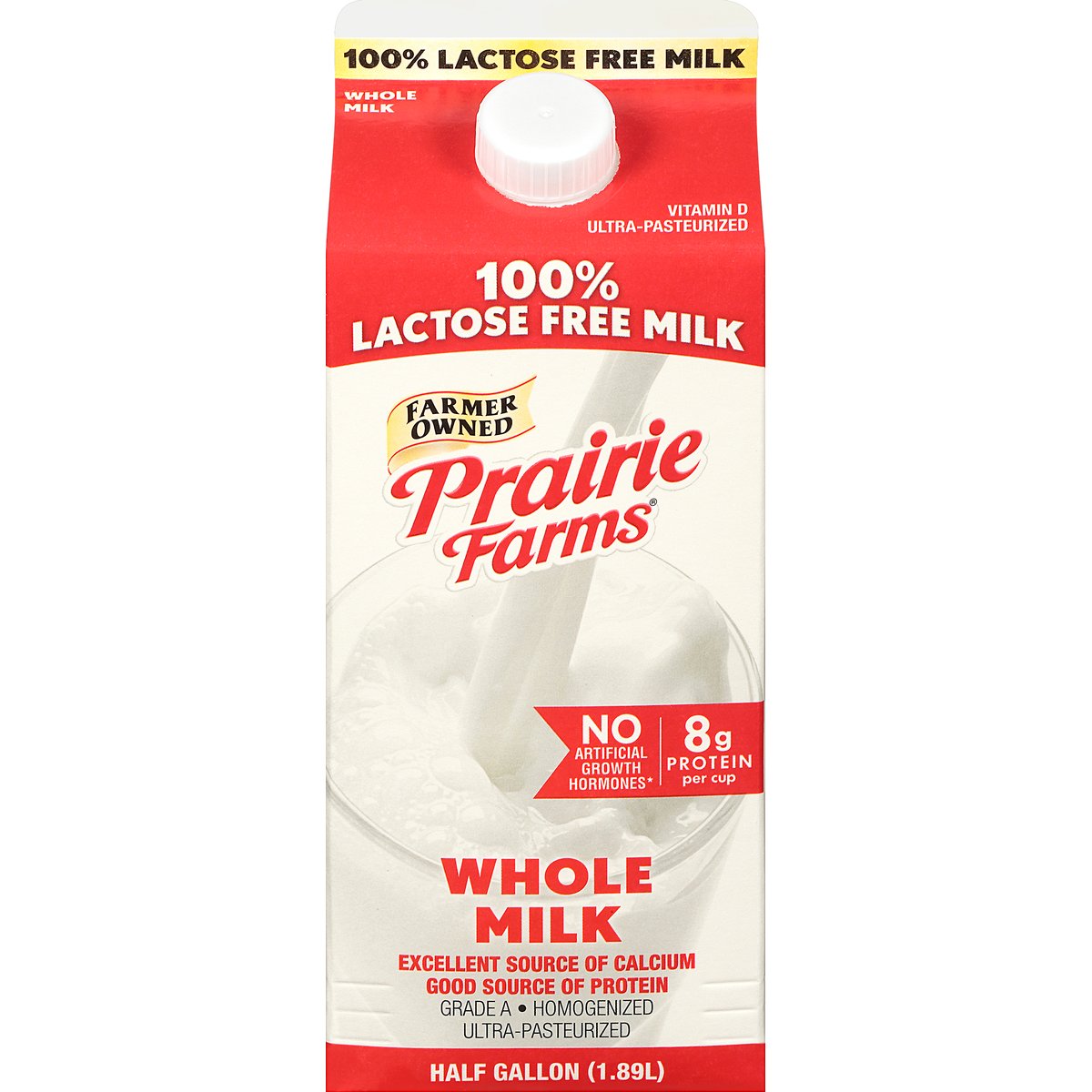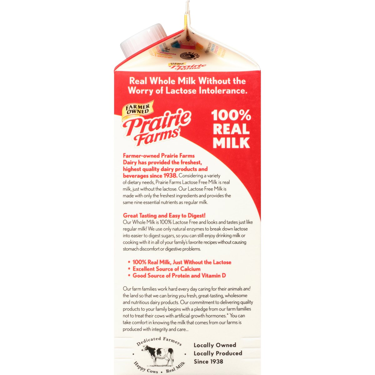 8g protein per cup. 100% Lactose free milk. Homogenized, Gluten free. Excellent source of calcium good source of protein. Vitamin D, ultra Pasteurized. Vitamin D. Farmer owned. Real whole milk without the worry of lactose intolerance. Farmer-owned Prairie Farms Dairy has provided the freshest, highest quality dairy products and beverages since 1938. Considering a variety of dietary needs, Prairie Farms Lactose Free Milk is real milk, just without the lactose. Our Lactose Free Milk is made with only the freshest ingredients and provides the same nine essential nutrients as regular milk. Great Tasting and Easy to Digest: Our Whole Milk is 100% Lactose Free and looks and tastes just like regular milk! We use only natural enzymes to break down lactose into easier to digest sugars, so you can still enjoy drinking milk or cooking with d in all of your family’s favorite recipes without causing stomach discomfort or digestive problems. 100% Real Milk, Just Without the Lactose. Excellent source of calcium. Good source of protein and Vitamin D. Our lawn families work hard every day caring for their animals and the land so that we can bring you fresh, great-tasting, wholesome and nutritious dairy products. Our commitment to delivering quality products to your family begins with a pledge from our farm families not to treat their cows with artificial growth hormones. (The FDA has determined that no significant difference has been shown between milk derived from artificial growth hormone treated and non-artificial growth hormone treated cows). You can take comfort in knowing the milk that comes from our farms is produced with integrity and care. Locally owned, Locally produced, Since 1938. Processed and packaged at location stamped above. No artificial growth hormones (The FDA has determined that no significant difference has been shown between milk derived from artificial growth hormones treated and non-artificial growth hormones treated cows). Certified Sourcing: Sustainable forestry initiative. www.sfiprogram.org SFI-01638. prairiefarms.com. Pure-pak Elopak. Recyclable.