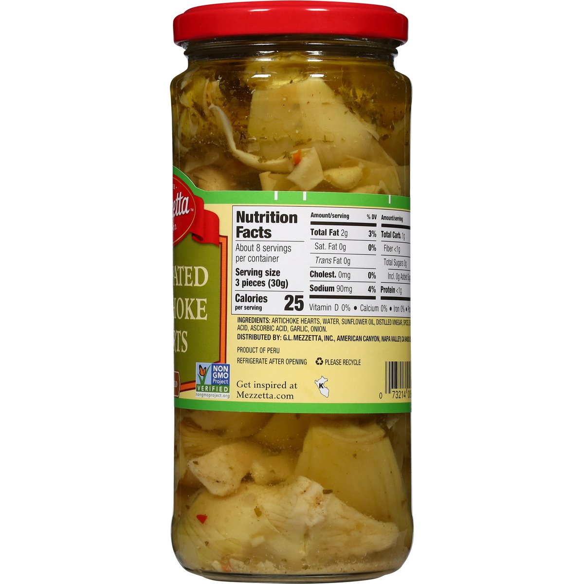 Non-GMO Project verified. nongmoproject.org. Since 1935. In our house, Nonna used artichoke hearts on antipasti platters, salads, pizza and pasta. mezzetta.com. Get inspired at mezzetta.com. Please recycle. Product of Peru.