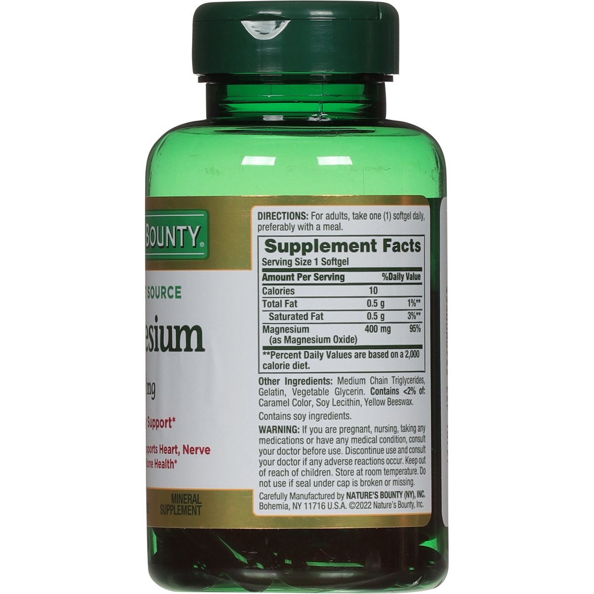 Nature's Bounty Magnesium, Excellent Source, 400 mg, Rapid Release Softgels