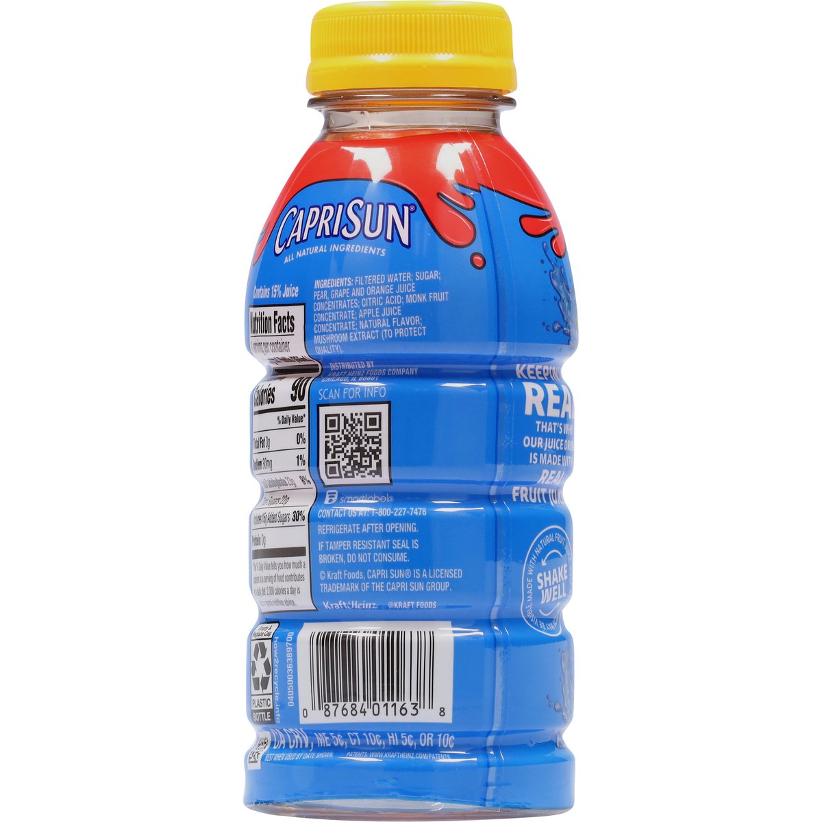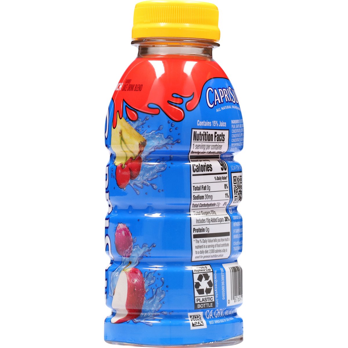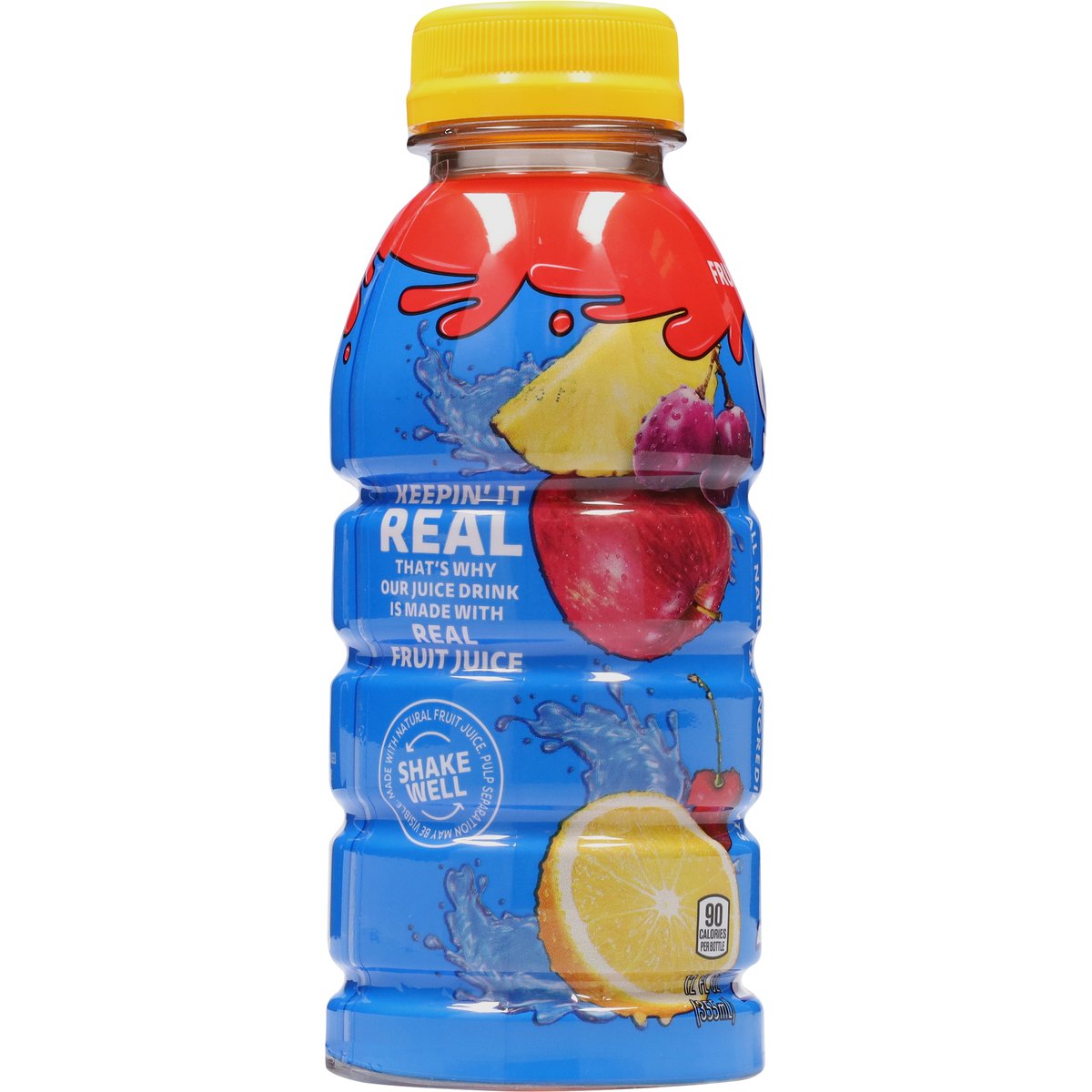 Fruit punch flavored juice drink blend. 90 calories per bottle. Keepin' it real that's why our juice drink is made with real fruit juice. how2recycle.info. SmartLabel: Scan for info. Contact us at: 1-800-227-7478.