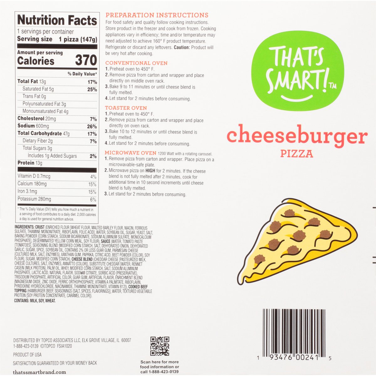 Cook & serve. Satisfaction guaranteed or your money back. U.S. inspected and passed by Department of Agriculture. thatssmartbrand.com. Scan for more food information or call 1-888-423-0139. Product of USA.