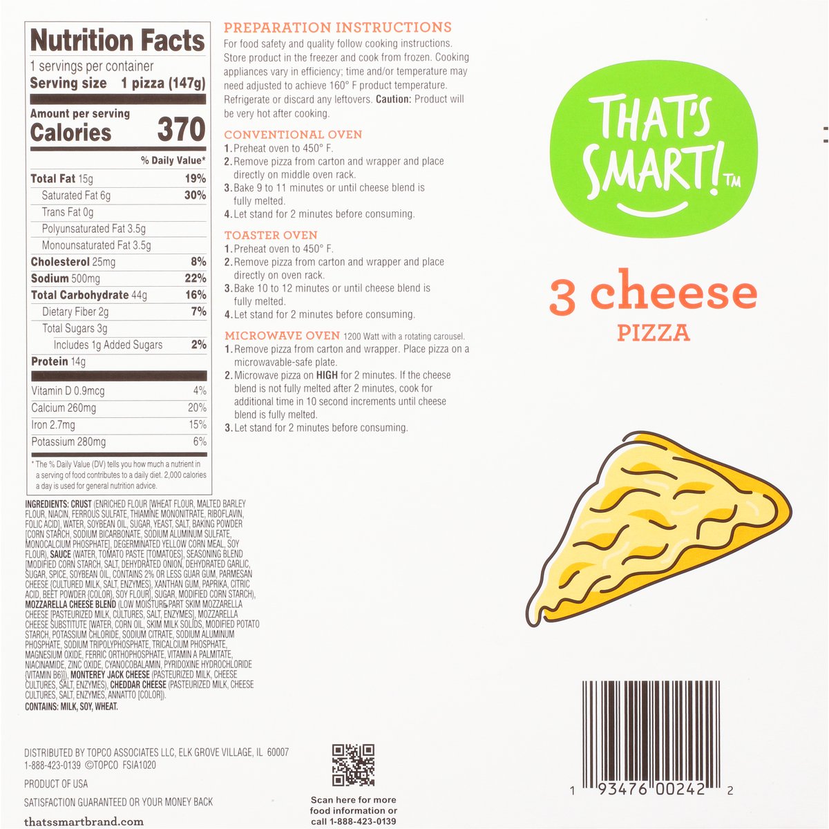 Cook and serve. Satisfaction guaranteed or your money back. thatssmartbrand.com. Scan for more food information or call 1-888-423-0139. Product of USA.