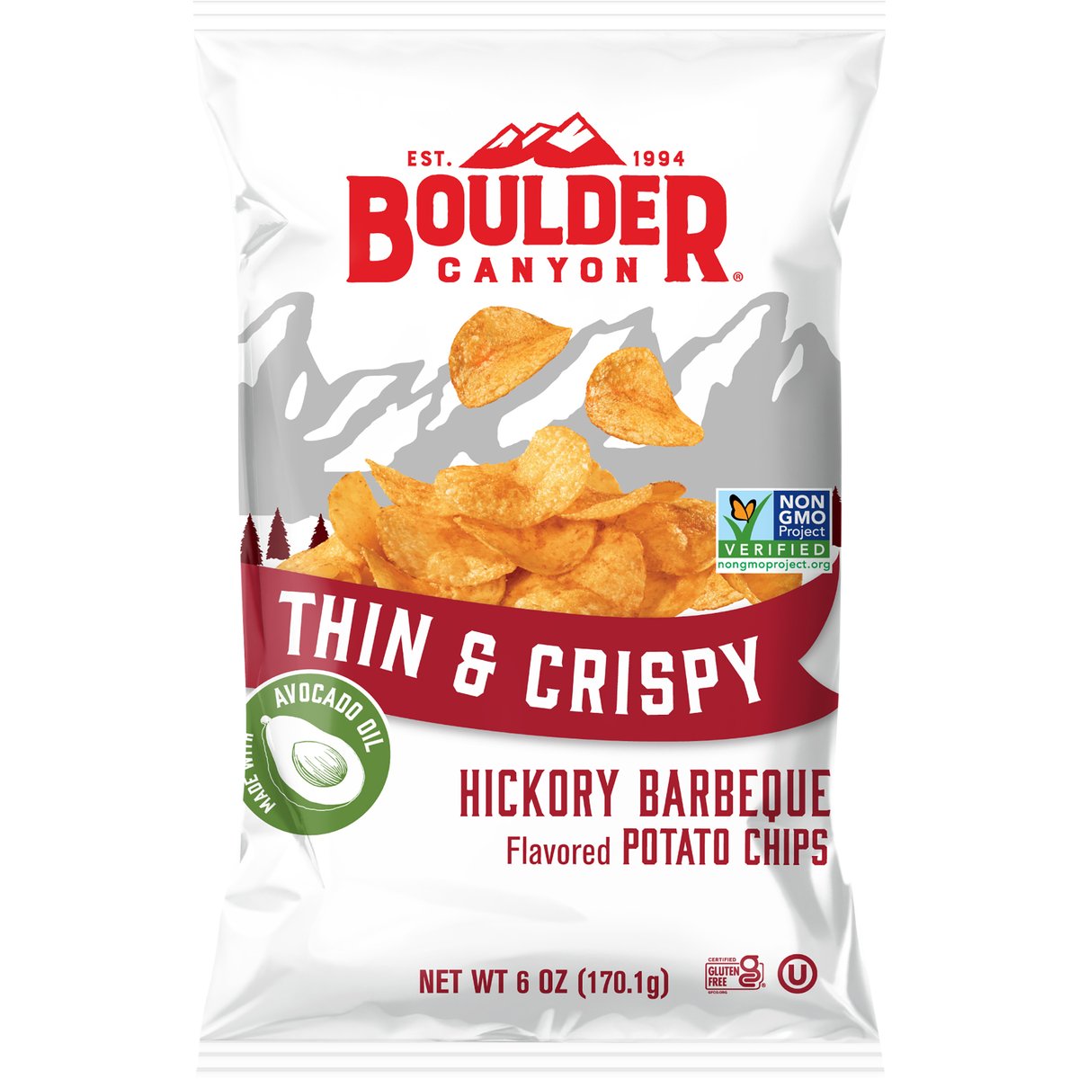 Boulder Canyon Potato Chips, Hickory Barbeque Flavored, Thin & Crispy