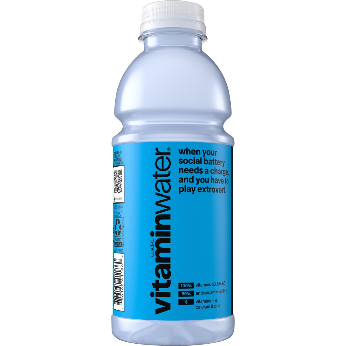 Flavored + other natural flavors. 100 calories per bottle. 100% vitamins b3, b5, b6. 50% antioxidant vitamin C. Vitamins a, e, calcium & zinc. New. When your social battery needs a charge. And you have to play extrovert. how2recycle.info. Scan for more food information or call 1-877-Glaceau. SmartLabel. Recycle me.