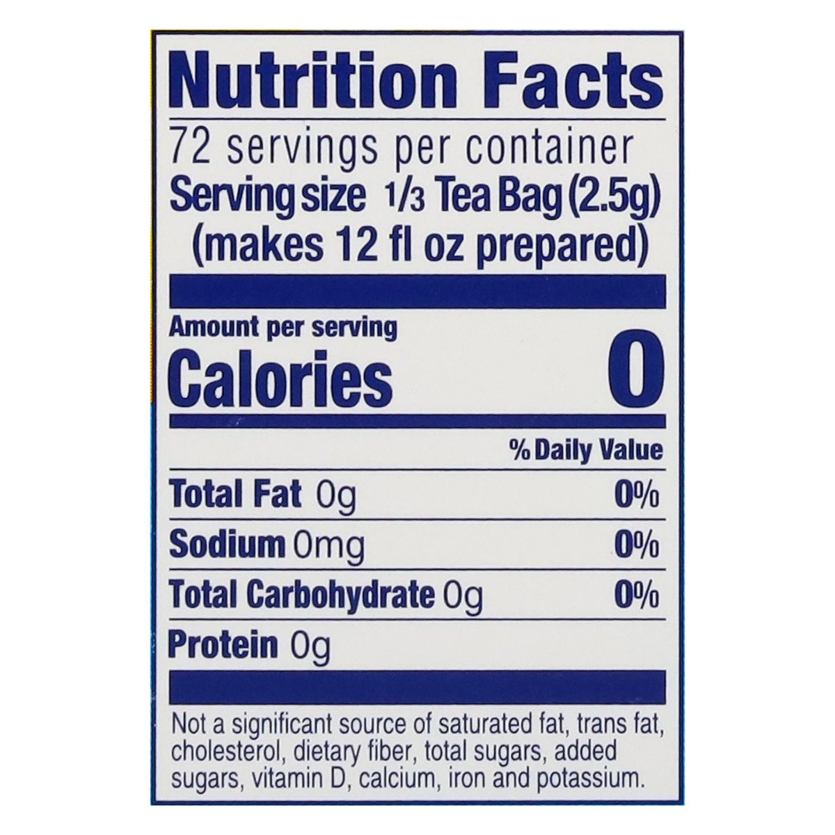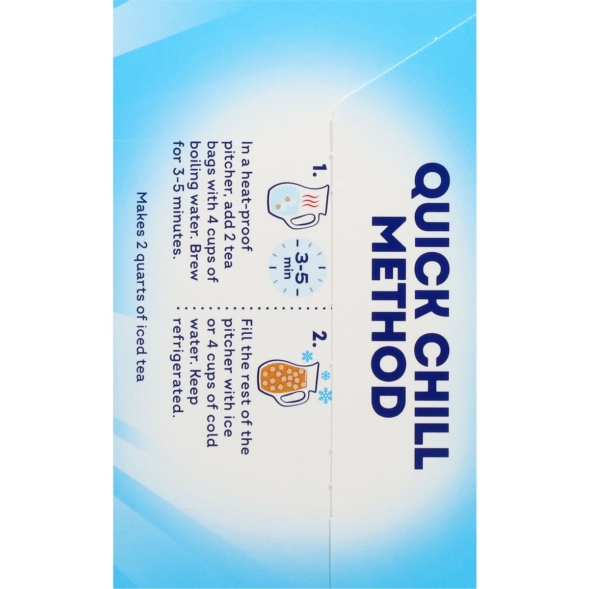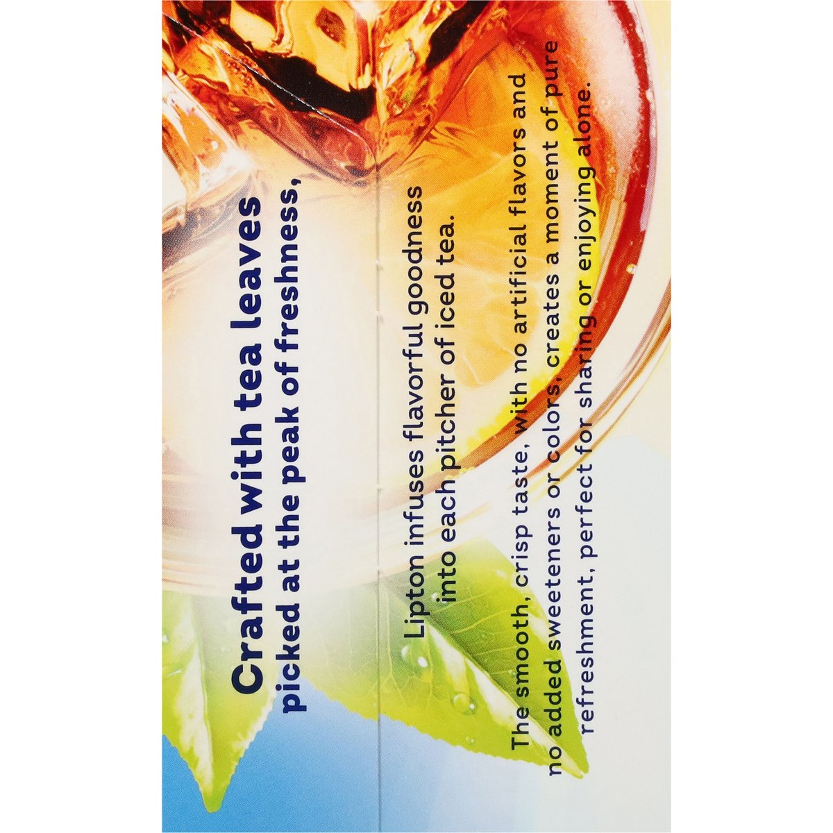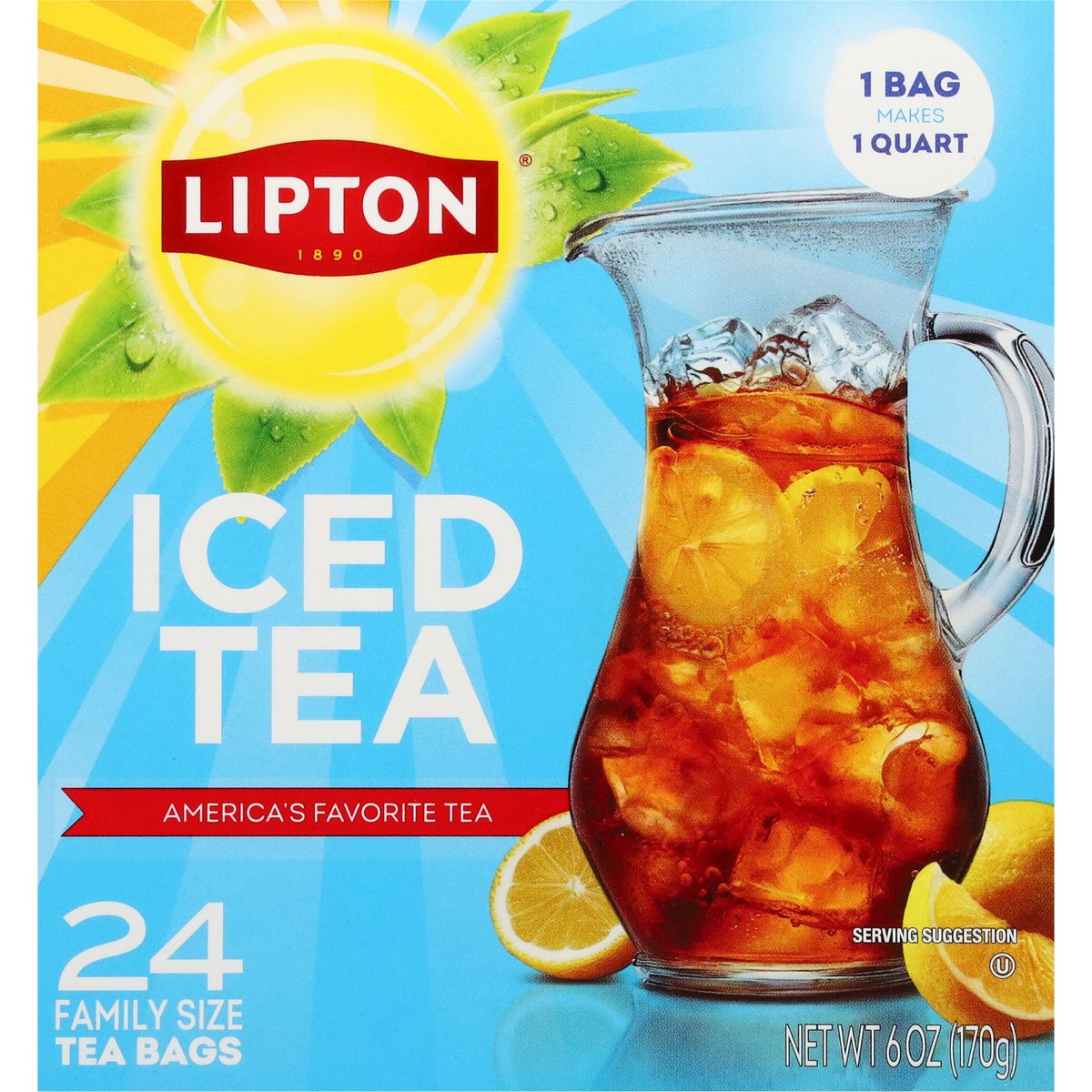 Caffeine Level(a): 46-70 mg. (a) Caffeine level per 12 fl oz serving using brewing method on pack. 1890. 1 bag makes 1 quart. America's favorite tea. Lipton infuses flavorful goodness into each pitcher of iced tea. Just brew, chill and enjoy! Crafted with tea leaves picked at the peak of freshness, Lipton infuses flavorful goodness into each pitcher of iced tea. The smooth, crisp taste, with no artificial flavors and no added sweeteners or colors, creates a moment of pure refreshment, perfect for sharing or enjoying alone. No added colors. No added sweeteners. www.lipton.com. how2recycle.info. Questions or comments? Call 1-888-LiptonT (1-888-547-8668) or visit www.lipton.com. Rainforest Alliance: People & nature. Black tea.