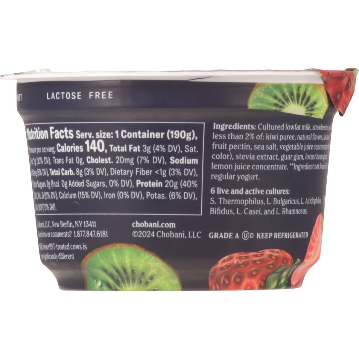 Yogurt, Greek, Lowfat, Strawberry Kiwi