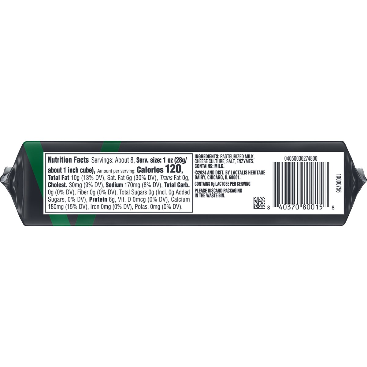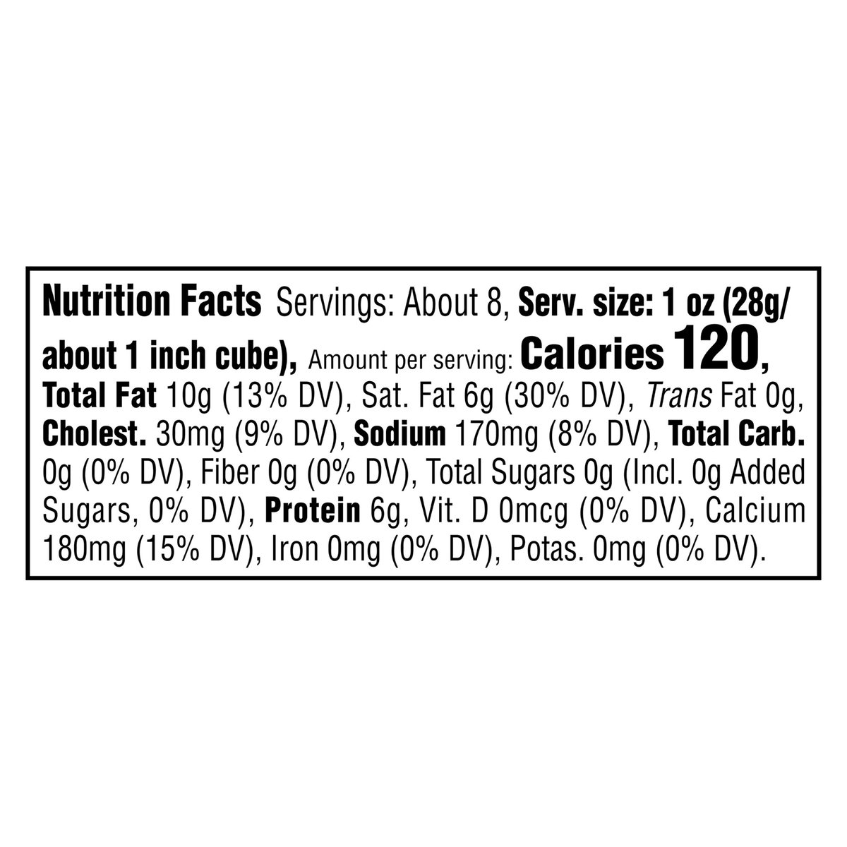 Our rich & bold vermont cheddar, perfect for pairing. 120 calories per 1 oz. Contains 0 g lactose per serving. See nutrition information for fat and saturated fat content. crackerbarrelcheese.com. 1-855-237-8748. Please discard packaging in the waste bin.