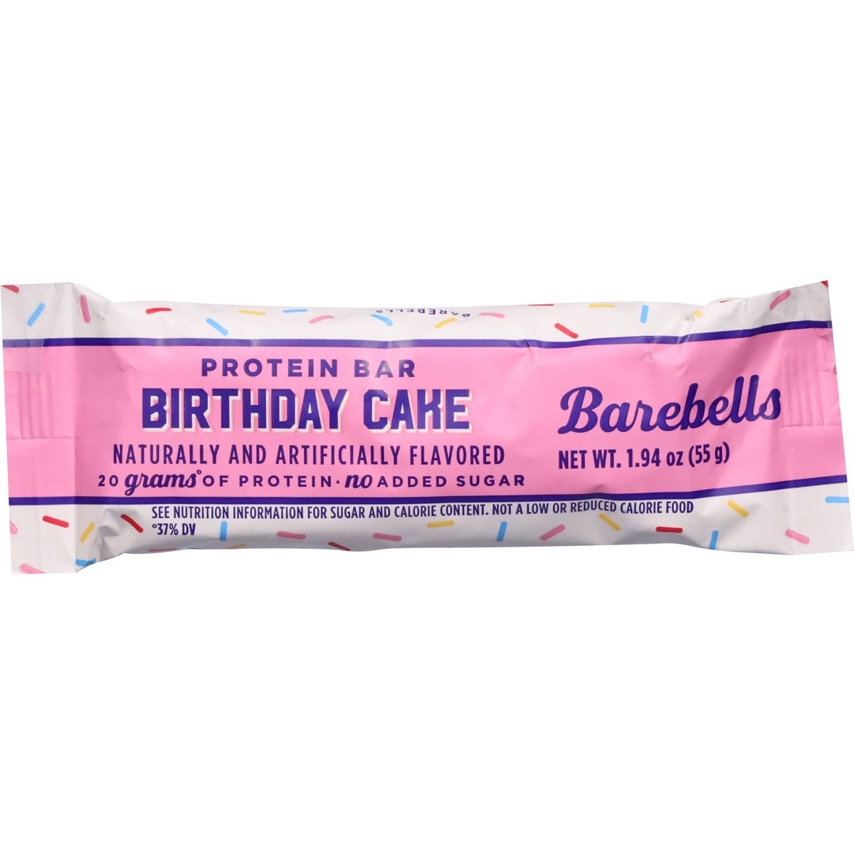 Naturally and artificially flavored. 20 grams(a) of protein. (a) 37% DV. No added sugar. See nutrition information for sugar and calorie content. Not a low or reduced calorie food. www.barebells.com.