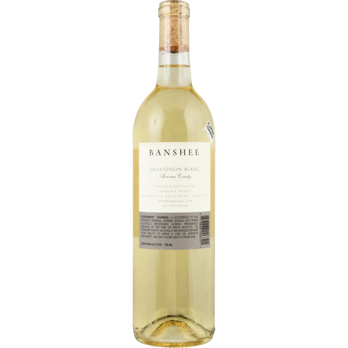 bansheewines.com. Alc. 13.6% by vol. 27.2 Vinted & Bottled by Banshee Wines, Geyserville & Healdsburg, California.