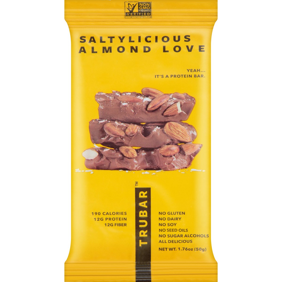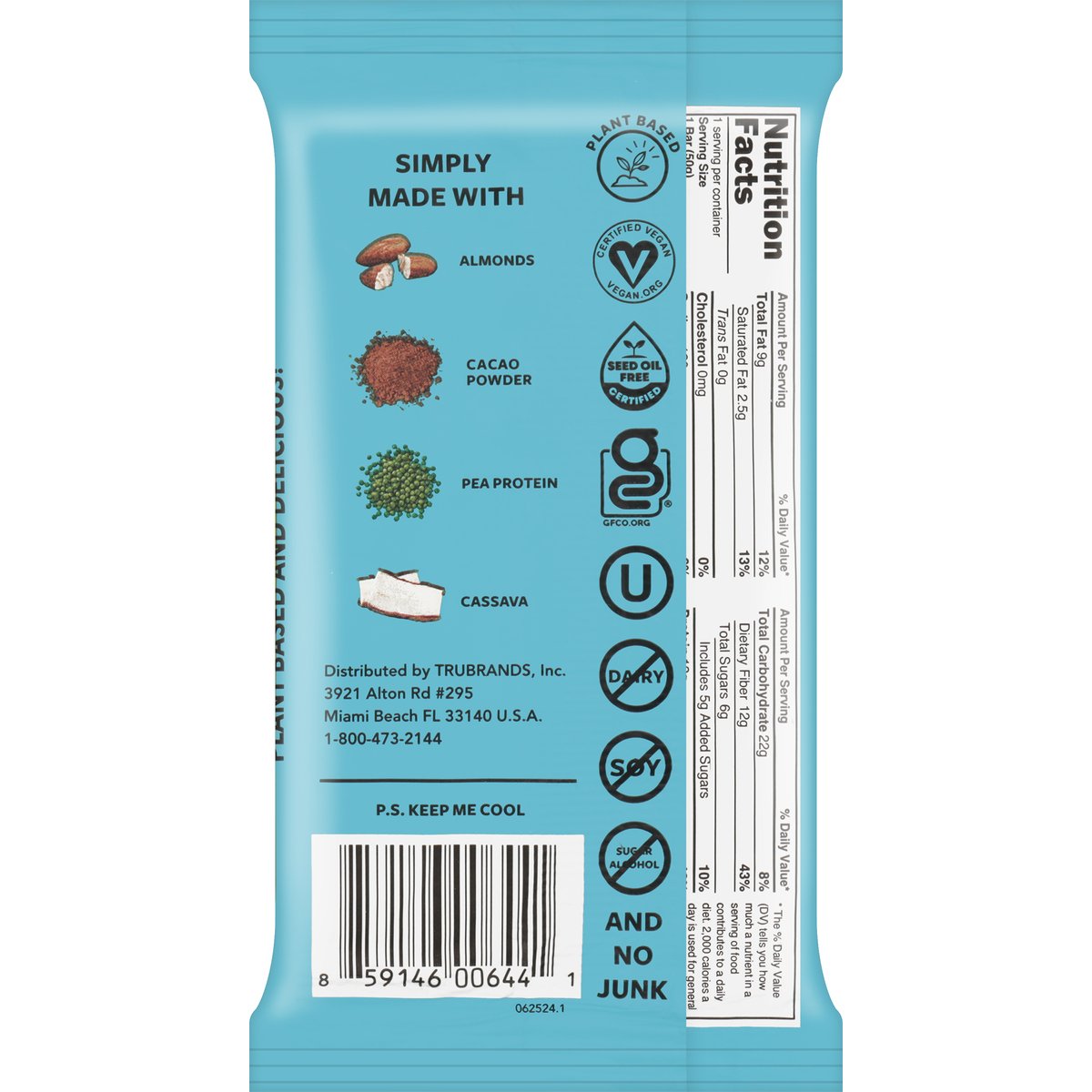 190 calories. 12 g protein. 12 g fiber. No gluten. Certified vegan. Vegan.org. Certified gluten free. gfco.org. No dairy. No soy. No sugar alcohols. Non-GMO Project verified. nongmoproject.org. Yeah... It's protein bar. No seed oils. No sugar alcohols. All delicious. And no junk. trubar.com.