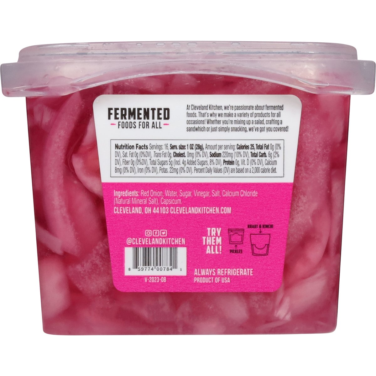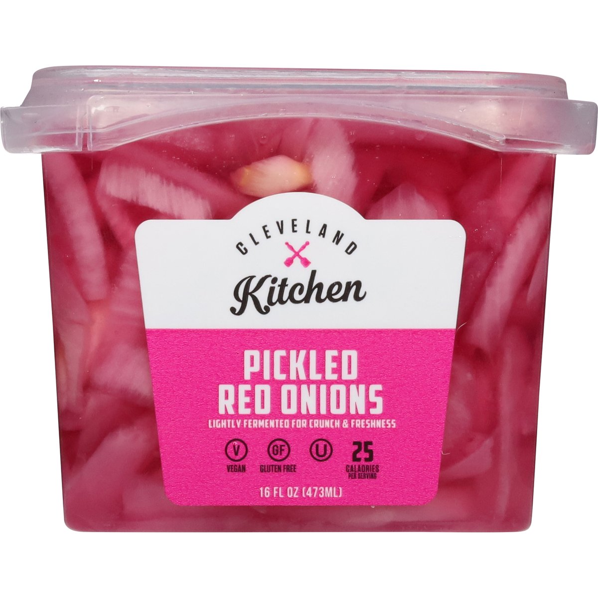 Lightly fermented for crunchy & freshness. 25 calories per serving. Vegan. Gluten free. At Cleveland Kitchen, we're passionate about fermented foods. That's why we make a variety of products for all Occasions! Whether you're mixing up a salad, crafting a sandwhich or just simply snacking, we've got you covered! clevelandkitchen.com. Instagram. Facebook. Twitter. (at)clevelandkitchen. Product of USA.
