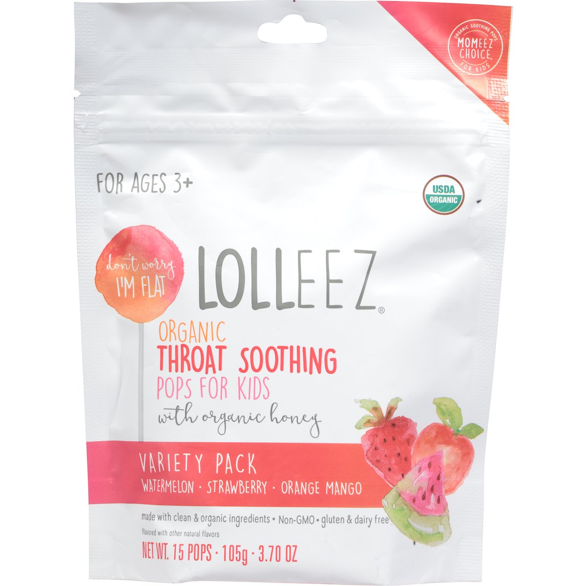 Lolleez for Ages 3+ Organic Assorted Throat Soothing Pops for Kids Variety Pack