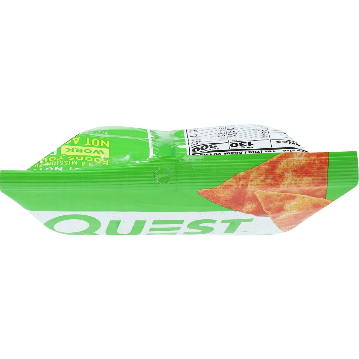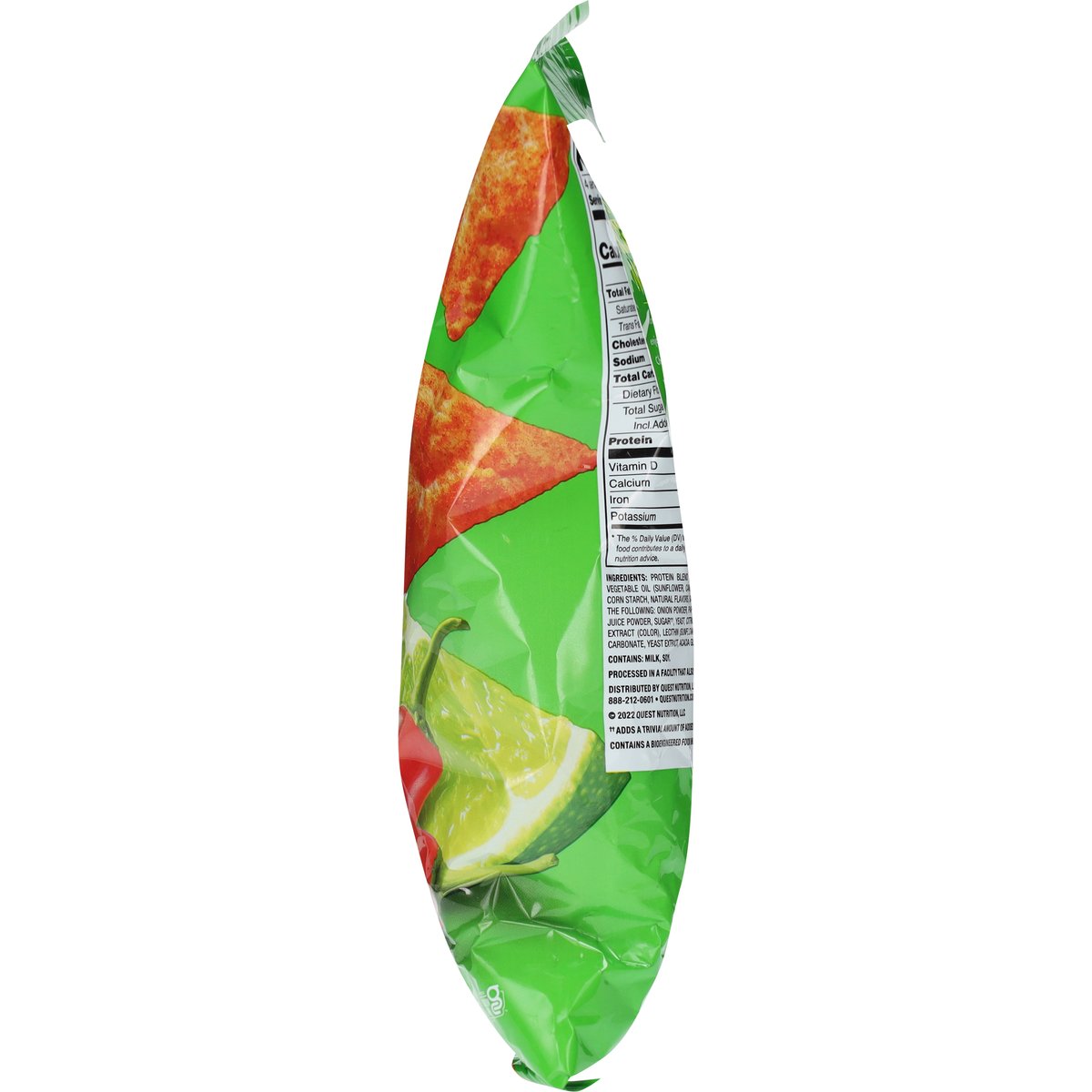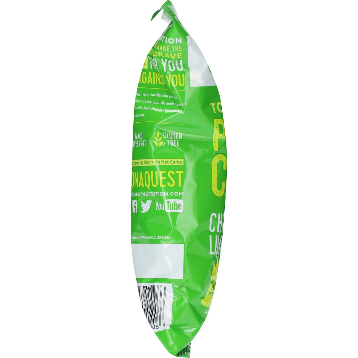 Per Serving: 17 g protein. 4 g net carbs*. * 4 g carbs - 0 g fiber = 4 g net carbs. Certified gluten free. gfco.org. Gluten free. Contains bioengineered food ingredients. Quest Nutrition is on a mission to make the foods you crave work for you not against you. Want a tangy, tortilla chip you can enjoy anytime? Lucky you! We made Quest Chili Lime Tortilla Style Protein Chips to feed your flavor cravings. Baked never fried. www.questnutrition.com. #onaquest. Instagram. Facebook. Twitter. YouTube.